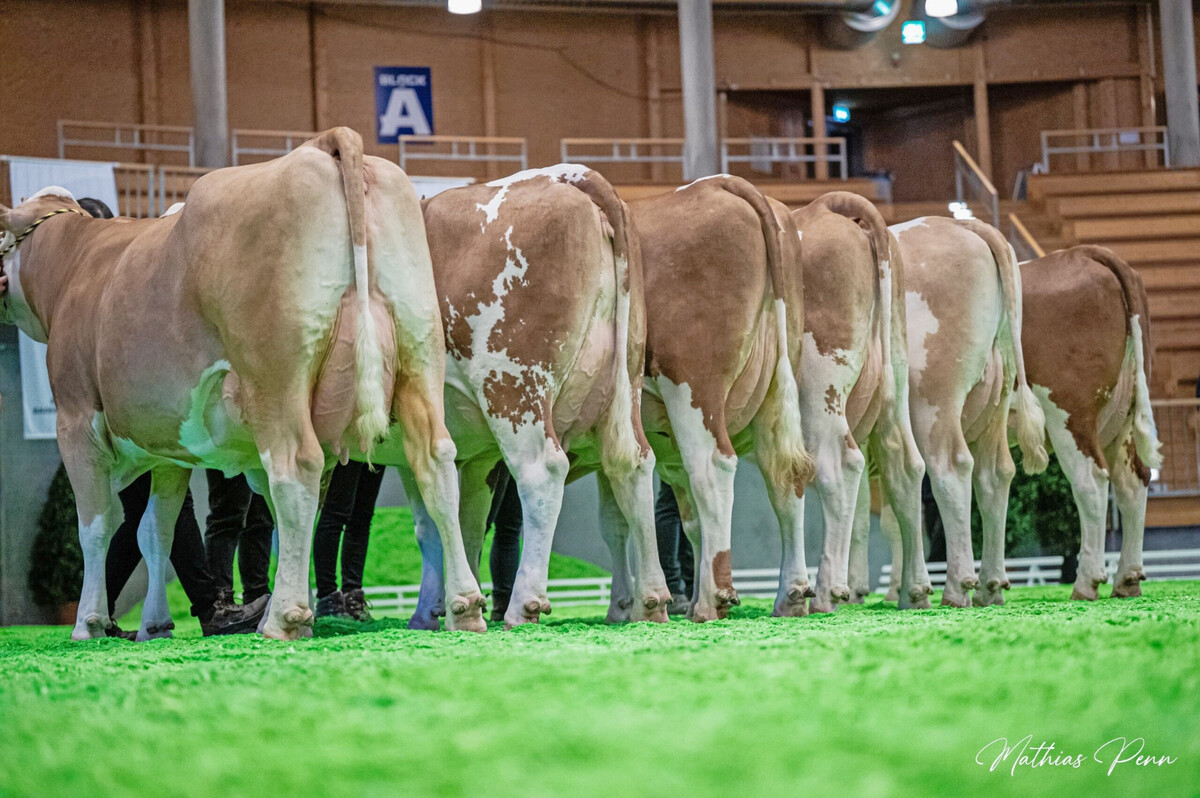 Bei der Entscheidung um das beste Euter aller Jungkühe setzte sich die Habsburger-Tochter Raika von Matthias Rechner aus Mudau klar gegen die Konkurrenz durch. Der optimale, kompakte Euterkörper zeigte sich drüsig und mit optimaler Strichplatzierung und bester Vordereuteranbindung – ein für eine Jungkuh perfektes Euter. Enger war die Entscheidung bei der Auswahl zum Jungkuhchampion. Hier setzte sich Hiroto Sternchen von Andreas Schmid aus Bissingen gegen IQ Mona von Maike Hagel aus Sulzbach durch, da sie mehr Stil und ein besseres Schenkeleuter aufwies. Die jungen Kühe mit zwei Kälbern traten in zwei Klassen an. Hierbei konnte sich die Habsburger-Tochter Lotte von Markus Scheuing in der ersten Klasse vor die Vargas-Tochter Sayli der Haag und Wahl GbR aus Berwinkel durchsetzen und sich schließlich vor der Siegerin der zweiten Klasse, der Humidor-Tochter Maxine von Thomas Gassner aus Hundersingen, als Siegerin Jung bestätigen. Reservesiegerin wurde Humidor Maxine.