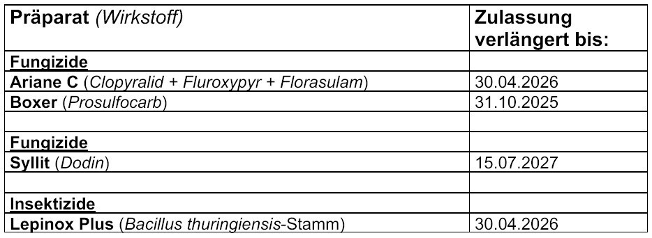 Das BVL hat die Zulassung zahlreicher Pflanzenschutzmittel vorläufig verlängert.