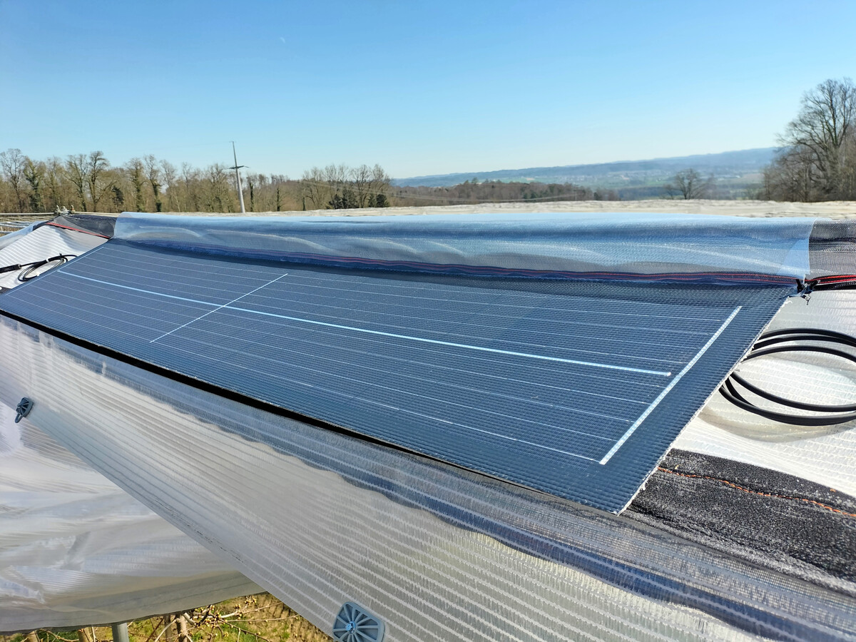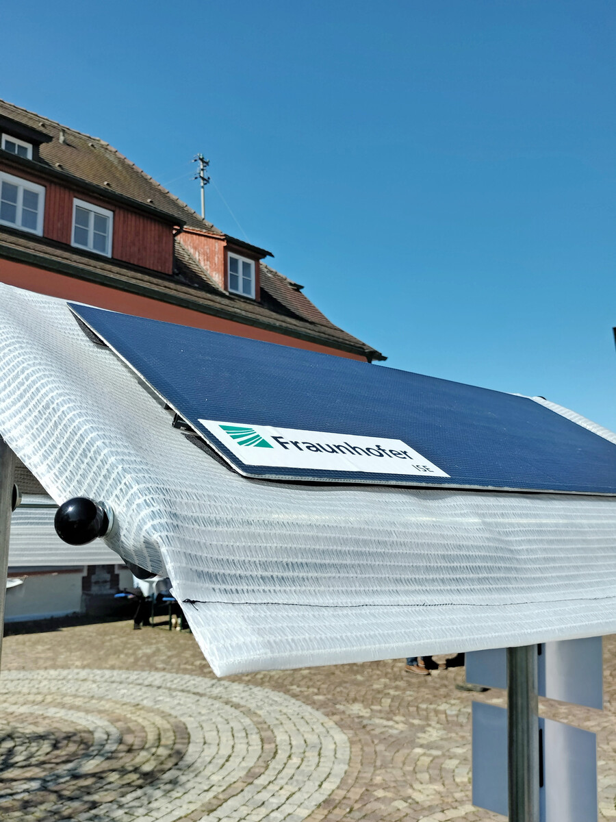 Für das Ziel, flexible Solarmodule in Kombination mit Witterungsschutzsystemen zu installieren, standen eine Vielzahl von Fragen zur Klärung an, wie Felix Balser, Projektleiter beim Fraunhofer ISE, erläuterte. So galt es, geeignete Solarzellen und Module zu entwickeln und deren Anbindung an das Schutzsystem zu überlegen. „Es sollte möglichst viel solare Fläche entstehen, wobei die Pflanzen gleichzeitig nicht zu stark beschattet werden dürfen“, beschreibt er die Anforderungen an eine Kompromisslösung. Dazu wurden Silizium-Solarzellen entwickelt, deren Leichtbauausführung dennoch Mindestanforderungen an die mechanische Stabilität erfüllen. Um das Gewicht zu reduzieren, wurde beispielsweise auf der Vorderseite eine Polymerfolie verwendet.