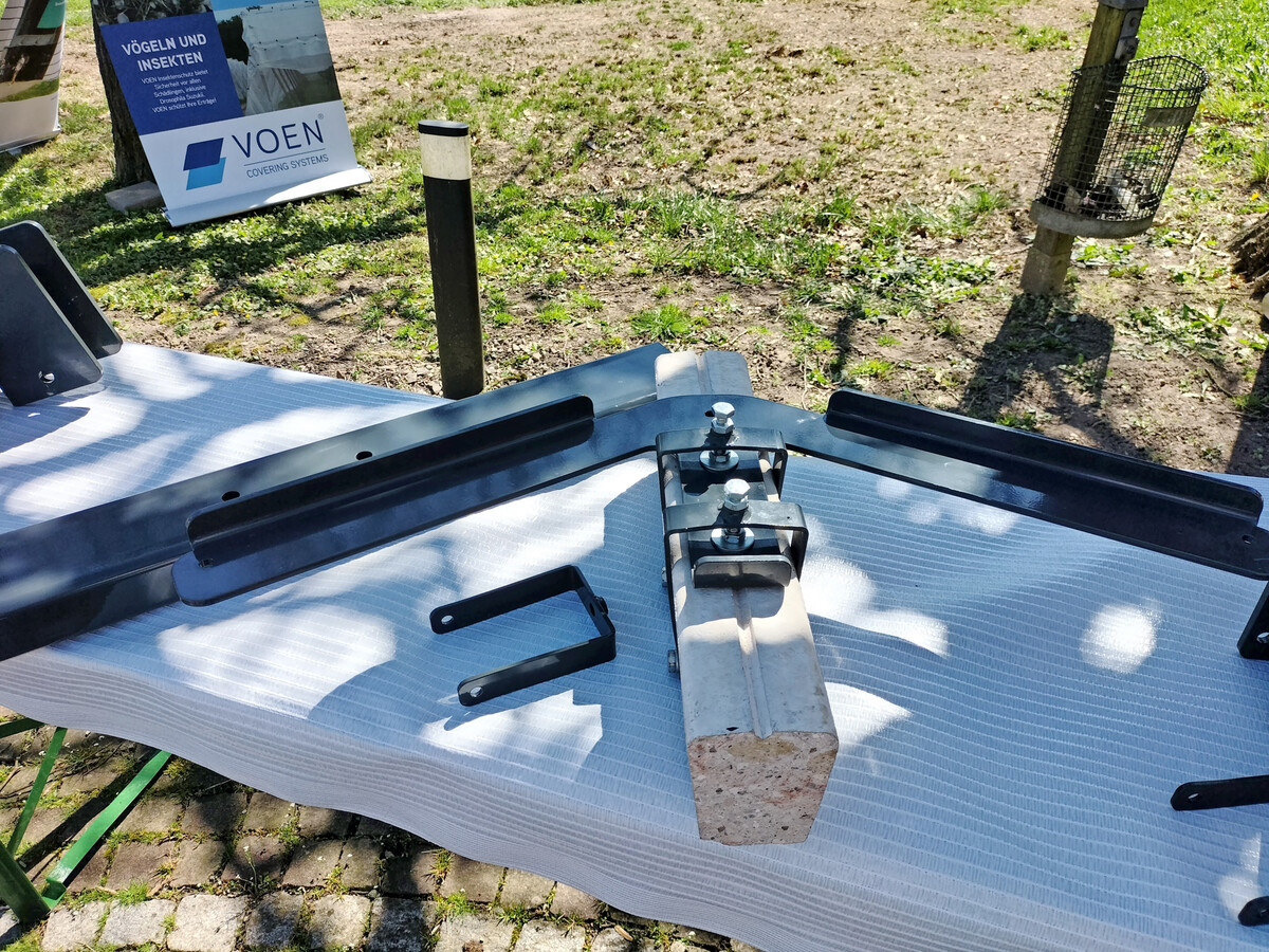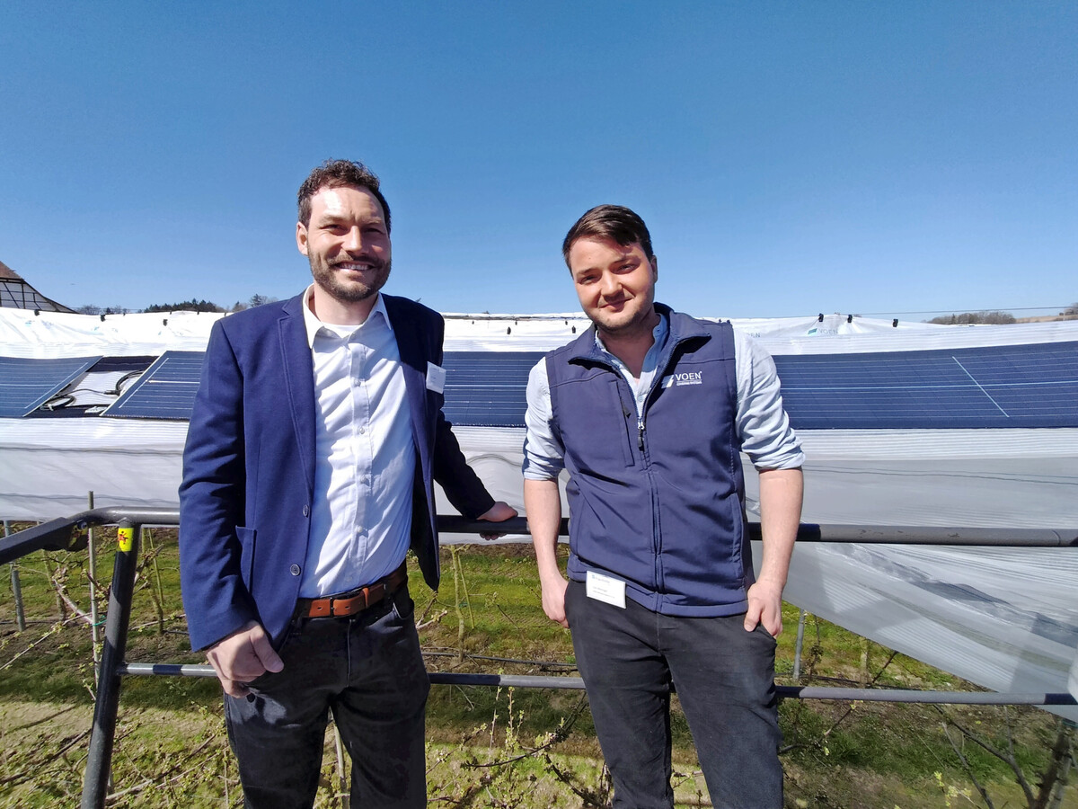 Ziel war neben einer Neubau- eine Nachrüstlösung für Solarmodule auf bestehenden Unterkonstruktionen für Hagelnetze oder Folienüberdachungen, wie Leo Vöhringer bei der Vorstellung der Demoanlage erklärte. Damit sollen Kosten gesenkt und Ressourcen geschont werden. „Wir wollten eine Anpassung von Agri-PV an die Kultur erreichen und nicht umgekehrt“, erläuterte der Obstbauer und Projektbetreuer der Firma VOEN.