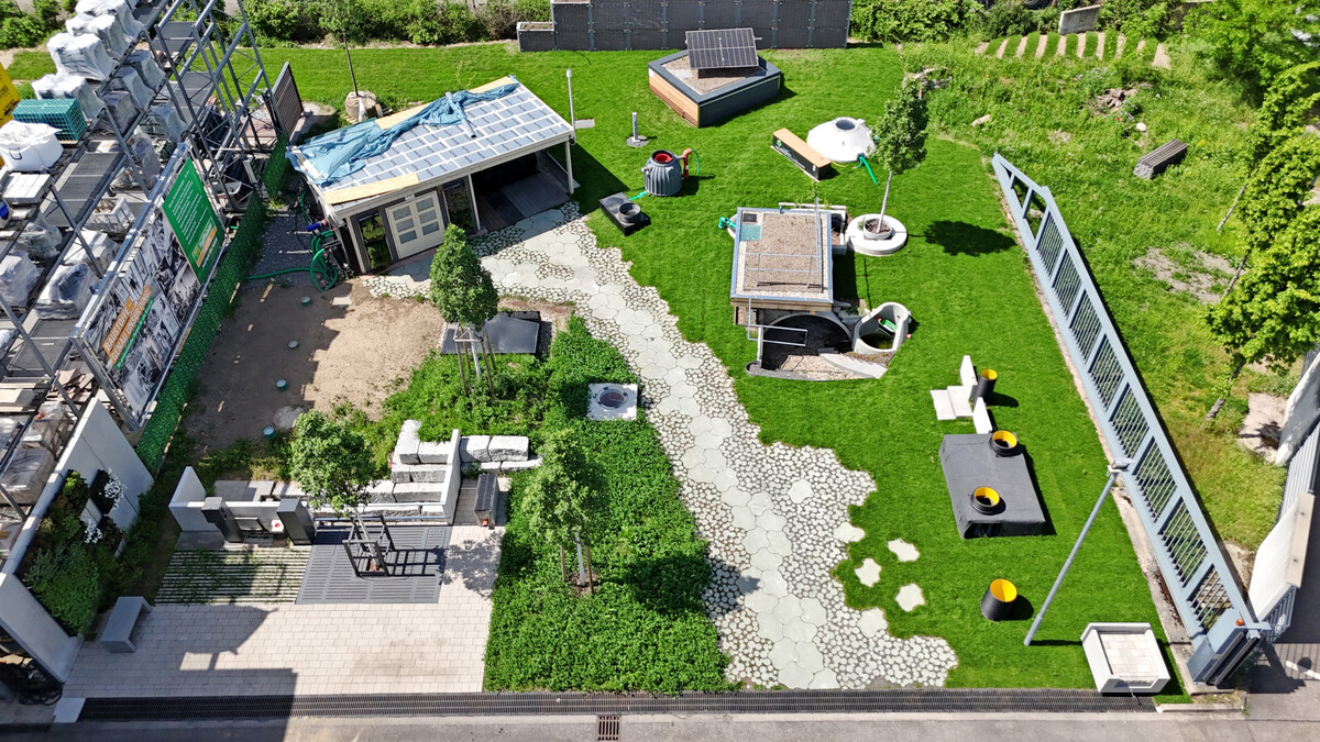 Schnell konnte er Firmen für das Vorhaben gewinnen. Im Februar 2024 folgte der Spatenstich. Im vergangenen Jahr wuchs die Anlage. Das Thema Regenwassermanagement-Systeme wurde um Beispiele für Strom und E-Mobilität sowie Fotovoltaik ergänzt – eine Solaranlage soll in Kürze folgen. „Heute wird sichtbar, dass Baustoffe nicht nur Beton sind. Baustoffe sind innovativ“, ist Falk sichtlich stolz.