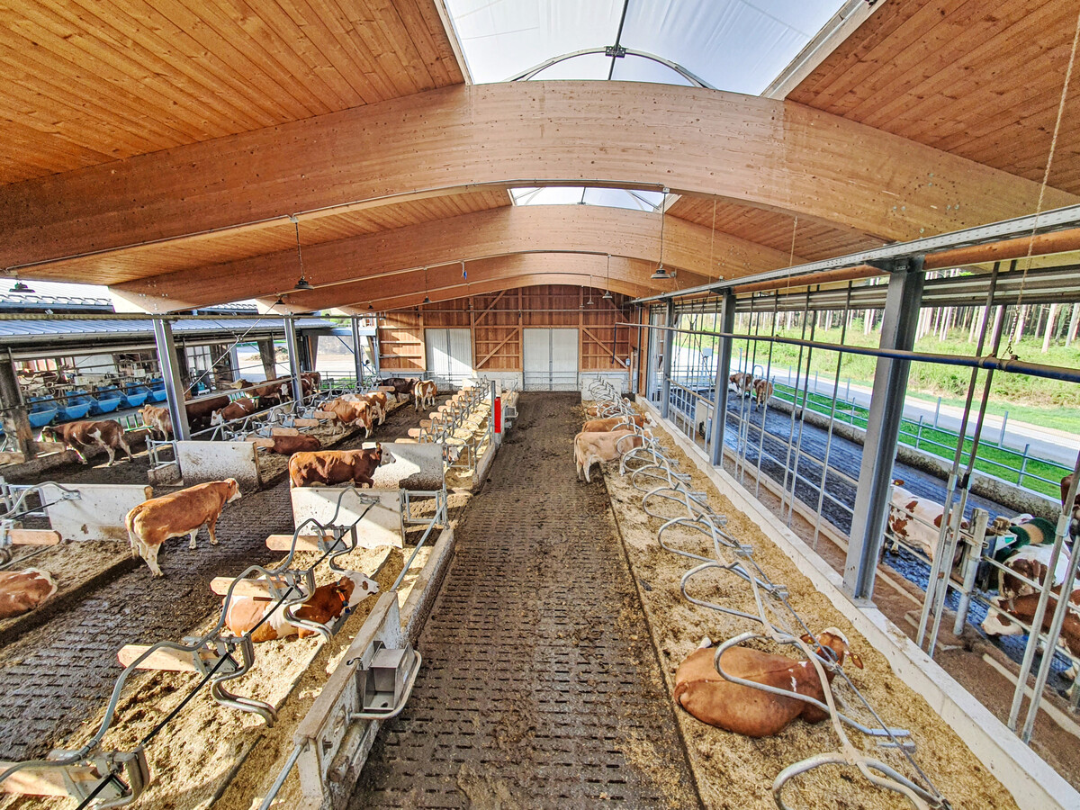 • Weidehaltung: Kühe mit Weidegang wiesen niedrigere THG-Emissionen pro Tier auf als Kühe ohne Weidegang. Dabei ist jedoch zu beachten, dass der Effekt von geringeren Emissionen bei Weidegang auch durch andere Faktoren wie beispielsweise der Effizienz des Grünlandmanagements (Nachsaat, Düngung, Weidesystem) und der Höhe der Zufütterung im Stall beeinflusst werden kann.