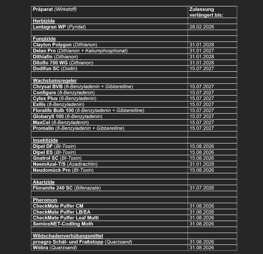 Verlängerung von Pflanzenschutzmittel-Zulassungen