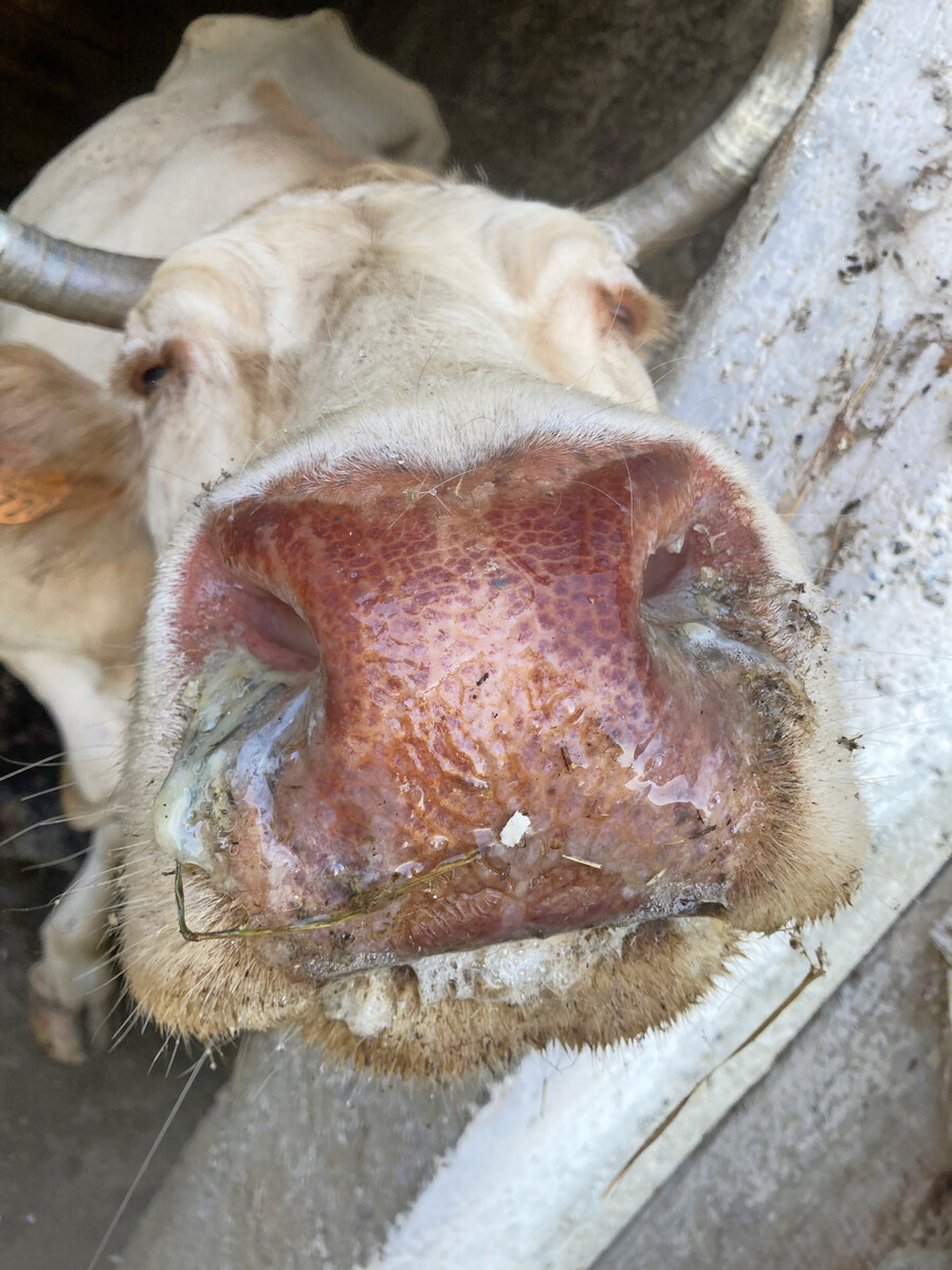 So kommt es bei dem plötzlichen (perakuten) Auftreten der Krankheit beispielsweise zu sehr hohem Fieber und ausgeprägten Lungen-, Hals- und Kopfödemen bei den Rindern. Bei einem akuten oder mäßig schnellen (subakutem) Verlauf der Erkrankung leiden die Tiere dagegen unter den folgenden Symptomen: • Fieber, Lethargie, Appetitlosigkeit. Als Folge davon geht die Milchleistung zurück • Geschwüre (Ulzera) in Maul, Nase und Magen-Darm-Trakt • Gerötete Augen (Konjunktivale Hyperämie) und gerötete Maulschleimhaut • Lid-und Bindehautödeme • Hochgradig Nasen- und Augenausfluss • Lungenödem, Flüssigkeitsansammlungen zwischen Brustkorb und Lunge (Pleuraerguss) • Blutung (Hämorrhagien) verschiedener Organe, Störungen der Gerinnung • Aborte • Schmerzen im Bewegungsapparat: langsame Bewegungen, Lahmheiten • Teilweise auch Zitzen betroffen • Als Komplikationen treten auf: Nierenversagen, Kalziummangel (Hypocalcämie) und Ausschuhen