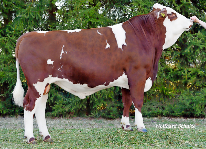 Isco ist mit einem GZW und einem MW von 116 konstant geblieben. Er bringt sowohl Milchmenge (plus 488 kg) als auch positive Inhaltsstoffe (plus 0,18 % Fett und plus 0,03 % Eiweiß). Isco zeigt außerdem insgesamt eine solide Exterieurvererbung und eine deutliche Verbesserung im Euter (113). Mit der zusätzlich guten Fleischleistung (Fleischwert, FW 112) ist er ein absoluter Zweinutzungsbulle, sollte aber nur bei kalbeerfahrenen Kühen eingesetzt werden. Er passt auch für die Mutterkuhhaltung.
