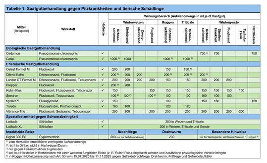 Für Flächen mit einem hohen Befallsrisiko steht in Winterweichweizen, Wintergerste und dank Notfallzulassung auch für Roggen (befristet vom 15. Juli 2025 bis 11. November 2025) mit Signal 300 ES (Wirkstoff: Cypermethrin) ein insektizides Beizmittel zur Verfügung. Die Beize schützt auch vor Fraß durch den Drahtwurm.