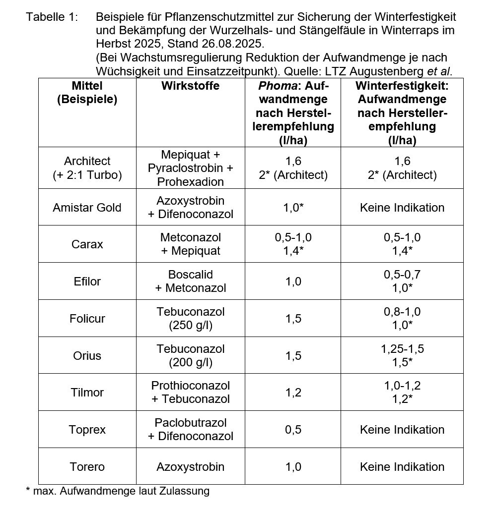 Optimal entwickelte Rapsbestände sind die Grundlage, um im Herbst bereits die Weichen für hohe Rapserträge zu stellen. Mittels pflanzenbaulicher Maßnahmen kann die Notwendigkeit des Pflanzenschutzmitteleinsatzes zum Schutz vor Infektionen durch die Wurzelhals- und Stängelfäule (Phoma lingam) und zur Sicherung der Winterfestigkeit beeinflusst werden.