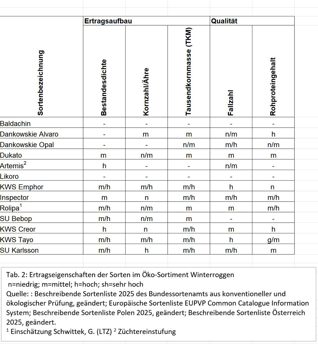 Dukato, vom Bundessortenamt im Ökolandbau geprüft: Lange Sorte mit mittlerer Standfestigkeit, gute Resistenzeigenschaften gegen Mutterkorn. Der Ertrag lag 2025 leicht unter dem orthogonalen Durchschnitt mit einem Relativertrag von 98,9 % über alle Standorte in BW. Züchtung/Vertrieb: Hybro Saatzucht GmbH & Co. KG/Saaten-Union.
