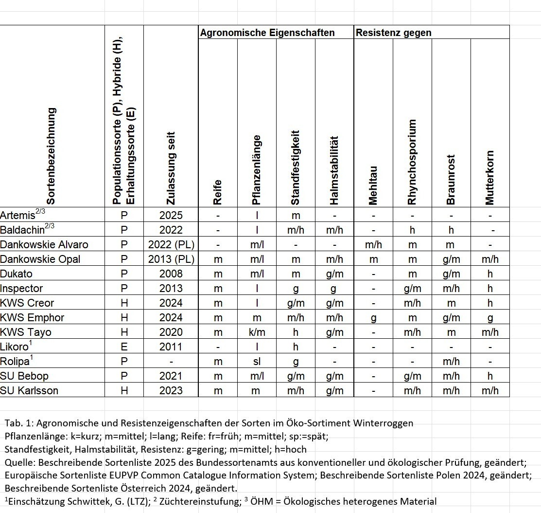 In Baden-Württemberg werden die Sortenprüfungen zu Winterroggen im ökologischen Landbau an vier Standorten durchgeführt: In Stuttgart-Hohenheim (Betreuung Universität Hohenheim), Crailsheim (Betreuung Demeter-Beratung), Maßhalderbuch (Betreuung Landratsamt Reutlingen) und Ochsenhausen (Betreuung Landratsamt Biberach). Das orthogonale Sortiment 2025 umfasst 7 Populations-Sorten. In Ochsenhausen wurden zusätzlich 4 Hybrid-Sorten geprüft.