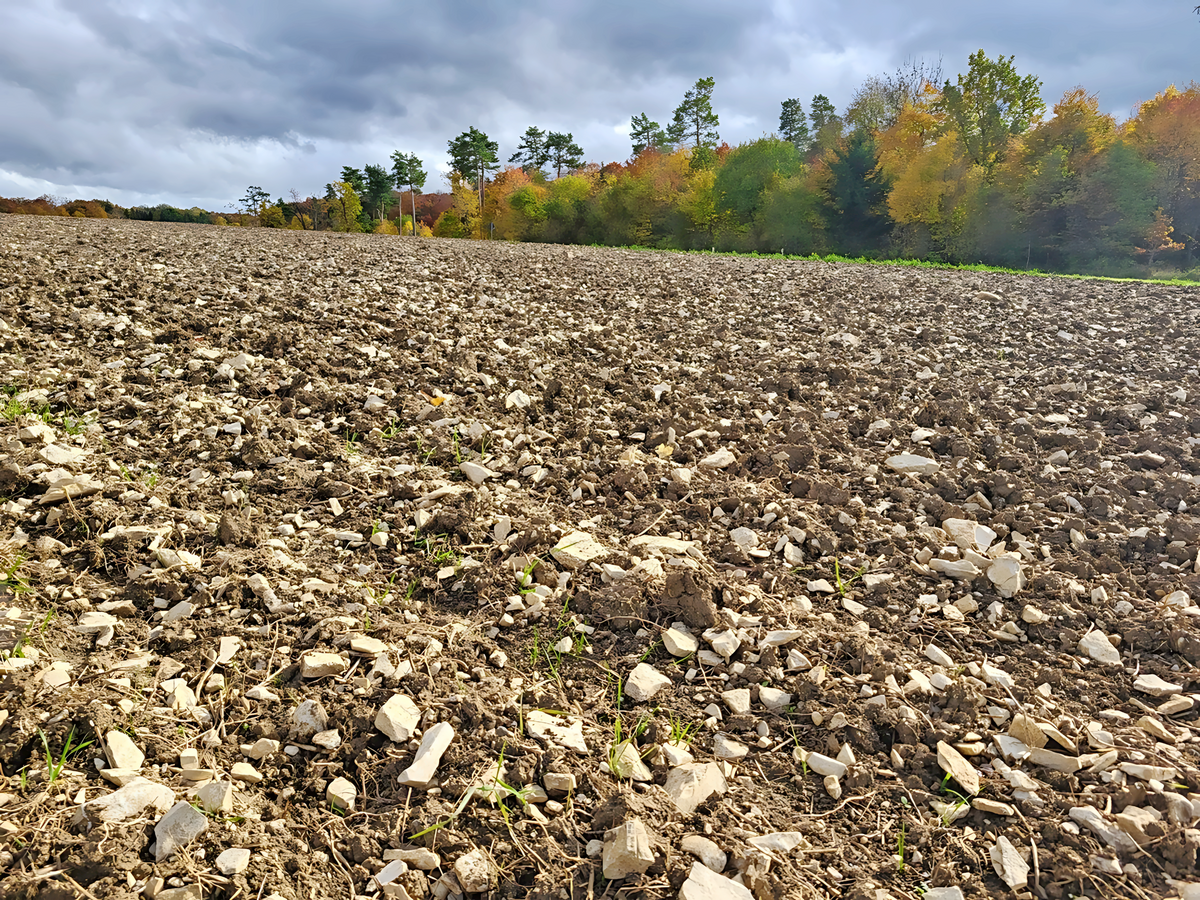 Wo der Rendzina-Boden besonders flachgründig ist, sind die Äcker immer mit Steinen übersät. „Hier pflügt der Bauer auf des Teufels Hirnschale.“ So empfahl sich in früheren Zeiten die Steinlese, das „Steinklauben“, nicht nur zur Erzielung besserer Erträge. Viele Steinbrocken waren hart und oft scharfkantig. Pflüge und Eggen wurden stark abgenutzt oder konnten durch größere Brocken sogar beschädigt werden. In einem alten Volkslied heißt es: „Wenn oiner a stoinigs Äckerle hot ond au an stompfe Pfluag ond no a garschdigs Weib dahoim, no hot er z’kratza gnuag.“