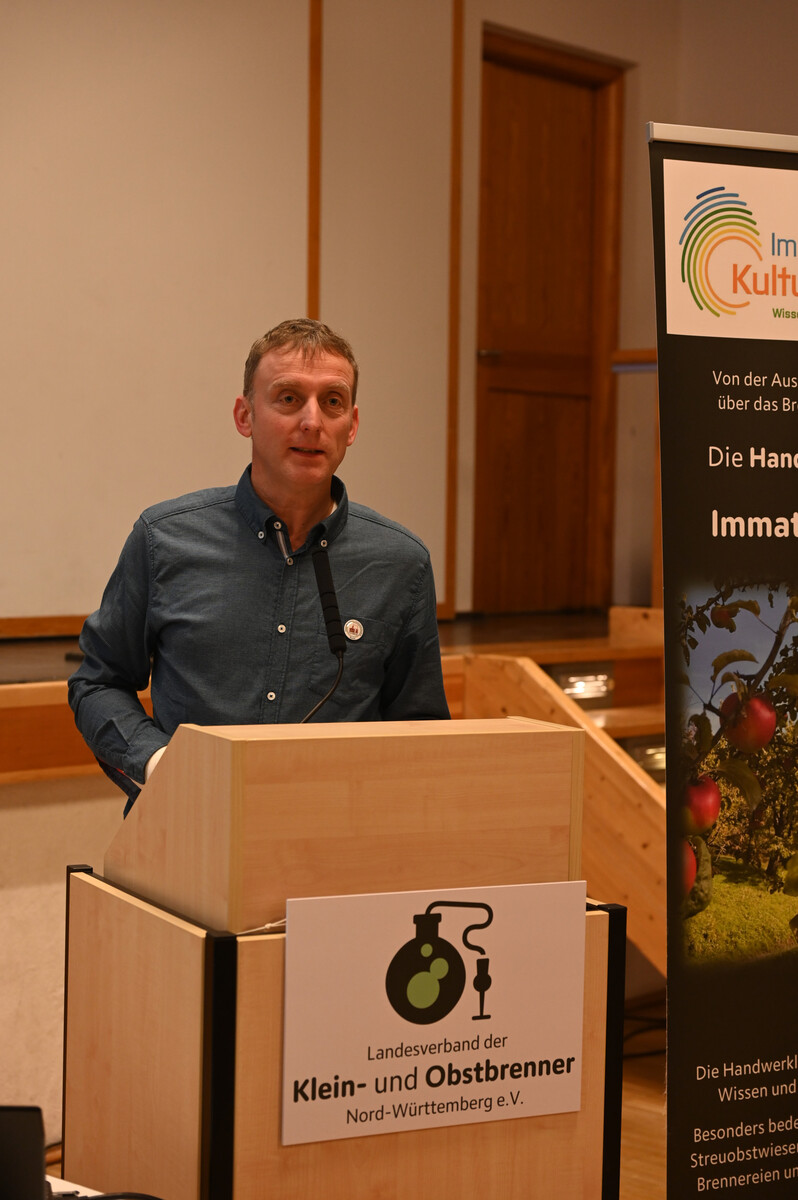 Doch bevor man zu diesem Thema kam, begrüßte in Möglingen zunächst Gerhard Koch, Mitglied des Geschäftsführenden Vorstandes, die Anwesenden und gab der Verbandsvorsitzende Karl Müller einen kurzen Rechenschaftsbericht und Ausblick. Die Mitgliederzahl scheint sich erfreulicherweise bei rund 1.200 Brennern zu stabilisieren. Erfreulich ist auch, dass bei der Landesprämierung der Anteil der Goldmedaillen steigt, die Brenner also weiter an der Qualität ihrer Destillate feilen. Licht am Horizont gibt es ebenfalls hinsichtlich der Erhöhung des Brennkontingentes von 300 auf 600 Liter reinem Alkohol im Jahr. Anders als unter der Ampelkoalition findet der Bundesverband bei Landwirtschaftsminister Alois Rainer und Finanzminister Lars Klingbeil offene Ohren für dieses zentrale Anliegen.