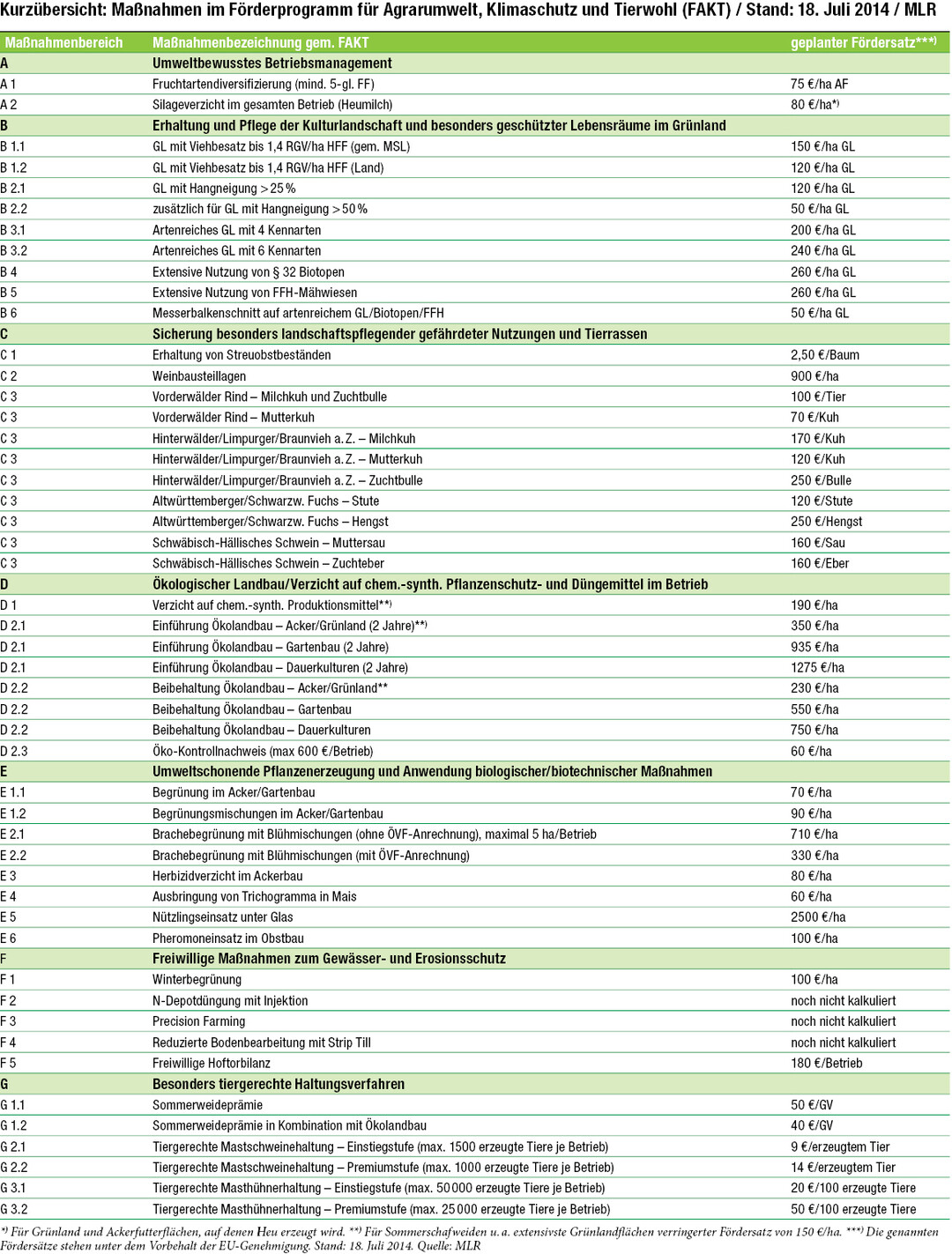 Tierschutz und artgerechte Tierhaltung als gesamtgesellschaftliche Aufgaben erhalten im Förderprogramm für Agrarumwelt, Klimaschutz und Tierwohl (FAKT) besondere Bedeutung. Nachfolgend erklärt das Ministerium für Ländlichen Raum und Verbraucherschutz (MLR) Details. In BWagrar 35/2014, Seiten 12 bis 14, sind Flächen-Maßnahmen veröffentlicht.