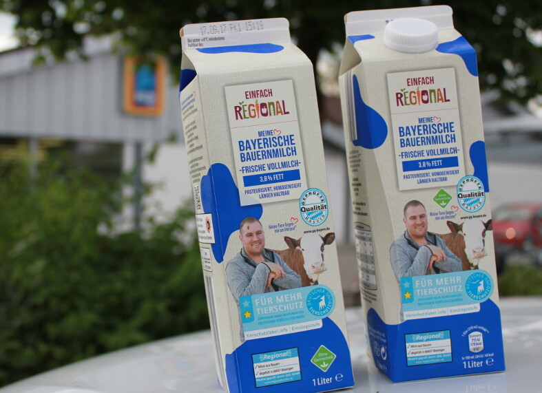Aldi Süd bietet seinen Kunden ab 4. September drei verschiedene Milchsorten, die mit der Einstiegs- und Premiumstufe des Tierschutzlabels gekennzeichnet sind. In der Einstiegsstufe (1 Stern) wird „meine Bayerische Bauernmilch“ als frische fettarme Milch (Verkaufspreis am 4. September 70 Cent) und frische Vollmilch (74 Cent) in den Filialen angeboten. Neben dem Label „Für Mehr Tierschutz“ trägt sie erstmals die neue Bildmarke „Einfach Regional“, die für die Regionalität einzelner Produkte bei Aldi Süd steht. Einzelne, teilnehmende Landwirte sind auf den Verpackungen abgebildet. „Wir legen in unserer Sortimentsgestaltung großen Wert auf Nachhaltigkeit und setzen uns für bessere Haltungsbedingungen bei Tieren ein. Ganz nach dem Prinzip der Einfachheit möchten wir, dass unsere Kunden bei uns einfach verantwortlich einkaufen können. So bieten wir ihnen bei vielen Produkten die Möglichkeit, sich für eine nachhaltige Alternative zu entscheiden“, erklärt Philipp Skorning, verantwortlicher stellvertretender Geschäftsführer für Qualitätswesen und Corporate Responsibility bei Aldi Süd.