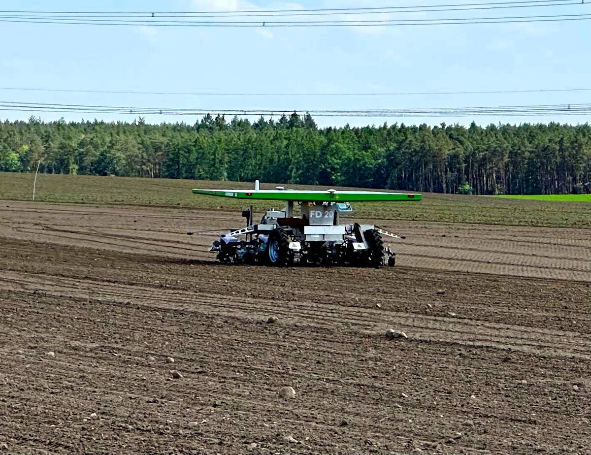 Grahmann: Die Maisaussaat, für die wir extra Säscheiben entwickeln ließen, war ein Drama, sie hat sich auf eineinhalb Hektar über eine Woche lang hingezogen. Entsprechend ist dann auch der Auflauf sehr heterogen. Aber das Hacken in der Reihe und zwischen den Reihen mit dem Farmdroid funktioniert schon super. Dann ist der heterogene Auflauf im Mais wiederum nicht so tragisch, weil wir mit dem Roboter ja die Einzelpflanze ansehen.