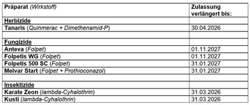 Das Bundesamt für Verbraucherschutz und Lebensmittelsicherheit hat die Zulassung von Pflanzenschutzmitteln, deren Zulassung durch Zeitablauf endete, verlängert.