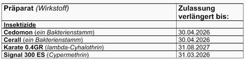 Die Zulassungen für vier Mittel wurden verlängert.