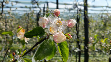 Beim Kernobst ist es noch zu früh, die Schäden durch den Frost der vorigen Woche genau zu beziffern. „In Bavendorf hatten wir vier Grad minus. Den Apfel hat es in der Vollblüte erwischt“, berichtet Dr. Manfred Büchele vom Kompetenzzentrum Obstbau Bodensee (KOB). Bei näherer Betrachtung der Blüten zeigten sich braune Stempel. Doch ob das den Ertrag schmälert, bleibe abzuwarten, da fünf bis zehn Prozent intakter Blüten immer noch für einen Vollertrag ausreichten, erklärt der KOB-Geschäftsführer. „Vielleicht ist es nicht mal der Frost, der zu ertragsrelevanten Schäden führt. Ursächlich könnte vielmehr die schlechte Witterung der vergangenen Woche sein, während der kein Bienenflug möglich war“, schiebt er nach und meint, dass bis in drei Wochen mehr bekannt sei. Eines dagegen scheint sicher: Den Westteil des Bodensees hat es stärker getroffen als den Ostteil, wo die Temperaturskala gar nicht oder nur wenig unter null gefallen ist.