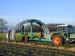 Heuling Landmaschinen legt zur expoSE auf Kundenwunsch wieder seinen Bügelwagen neu auf. Mit dem Bügelwagen können die Tunnelbögen sowohl längs auf der Straße gefahren werden als auch quer zum Aufstellen der Tunnel. Der Bügelwagen ist ausgestattet mit Arbeitsbühne, Lenkachse und Luftdruckbremse. Weiterhin zeigt das Unternehmen die neu entwickelte selbstfahrende Substratfräse für belgische Dämme. Wie auch die Substratfräse für Rinnen wird im Damm / in der Rinne das Substrat aufgelockert, Pflanzenreste zerschnitten (und damit der Wiederaufwuchs der vorhergehenden Sorte verhindert) und die Neubepflanzung erleichtert.