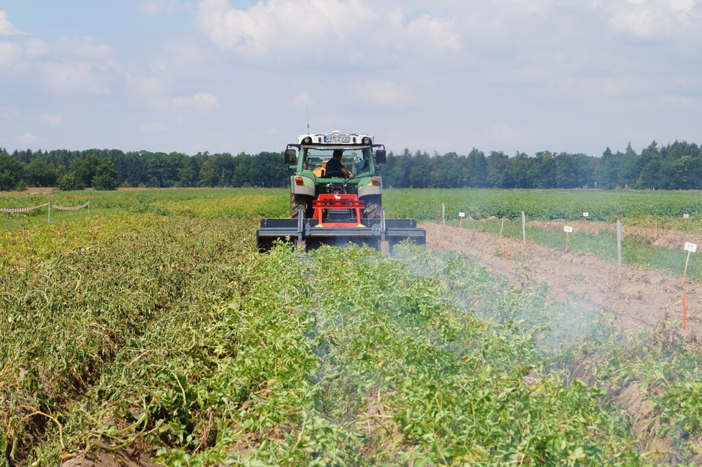 Im ökologischen Kartoffelanbau kann das Kraut mechanisch abgetötet werden – durch Abschlegeln, gegebenenfalls in Kombination mit dem thermischen Verfahren. Wann das Kraut beseitigt wird, hängt entscheidend vom Ziel der Maßnahme ab. Parameter wie Bodenfeuchte, Sortenempfindlichkeit und Witterung während und nach der Krautregulierung spielen eine Rolle.