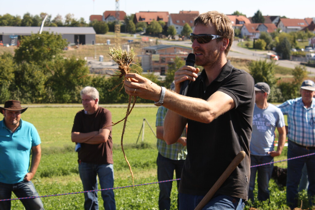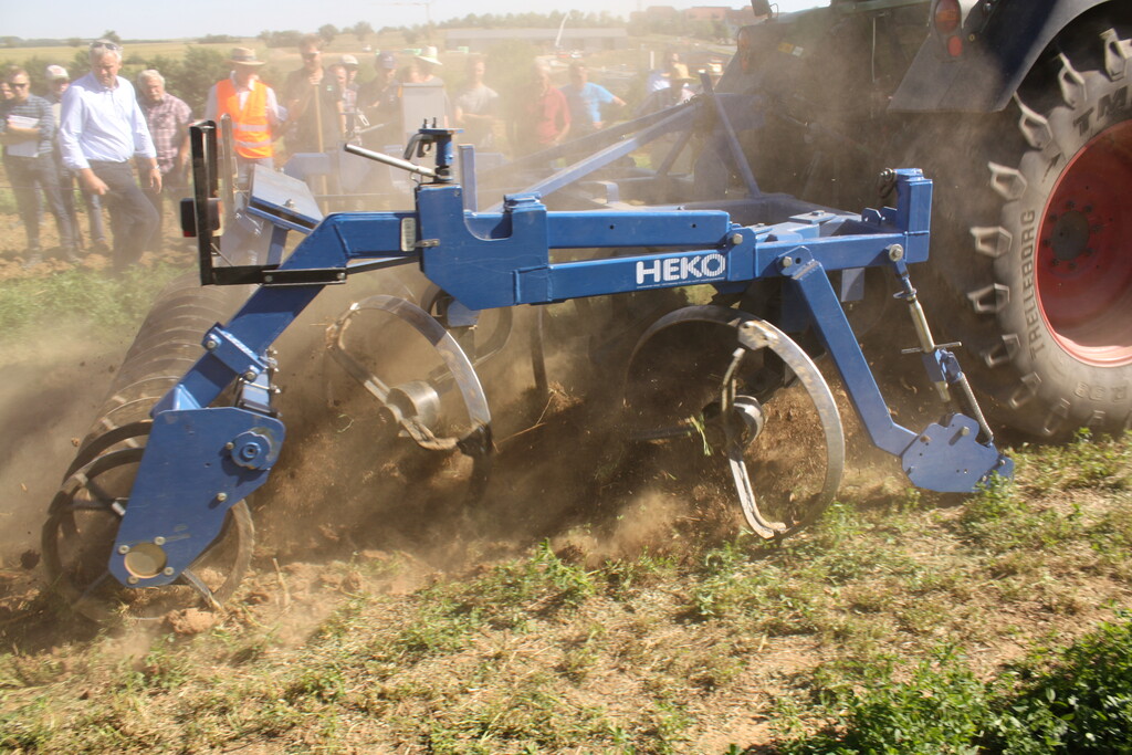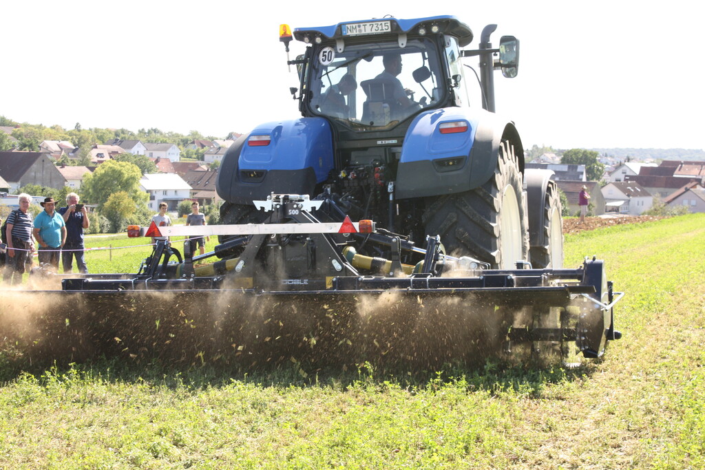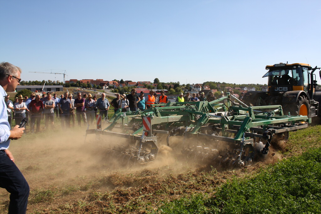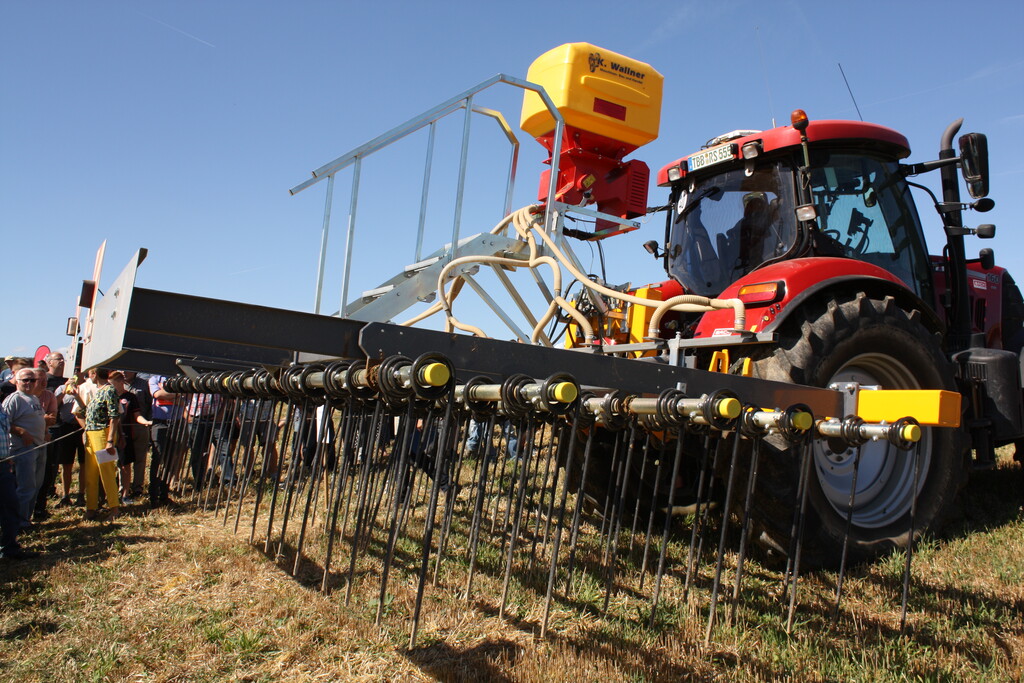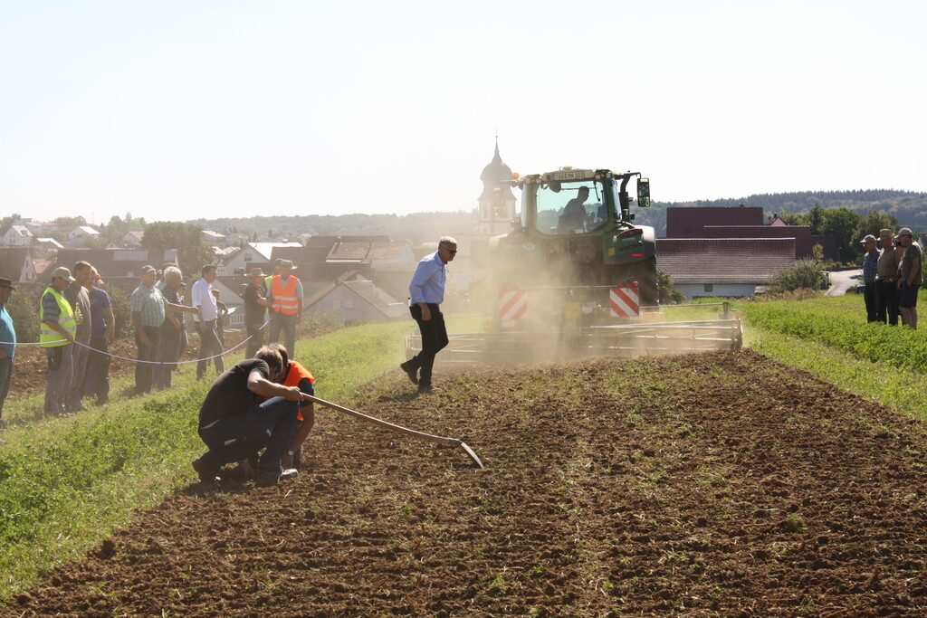 Bei der gemeinsamen Veranstaltung des Landwirtschaftsamtes im Main-Tauber-Kreis und des Bioland-Landesverbandes wurden 15 Maschinen bei der Stoppelbearbeitung auf einem abgeernteten Sommergerstenfeld und beim Umbruch eines dreijährigen Luzernebestandes im Einsatz vorgeführt. Nahezu 400 Feldtagsbesucher konnten die Arbeitsqualitäten der Bodenbearbeitungsgeräte vergleichen. Unter den Besuchern war auch Friedlinde Gurr-Hirsch, CDU-Landtagsabgeordnete und Staatssekretärin im Ministerium Ländlicher Raum, die sich über das große Interesse der Landwirte freute.