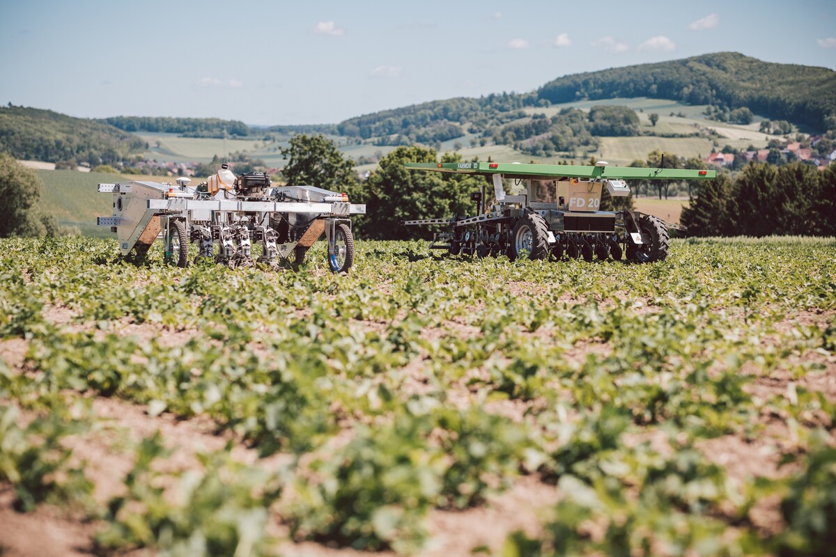 FarmDroid: Der Feldroboter von FarmDroid erfasst bei der Aussaat den Ablageort des Saatgutes digital und entfernt die Unkräuter später – basierend auf den Informationen des Pflanzenstandortes – mechanisch rund um die Zuckerrübenpflanze.