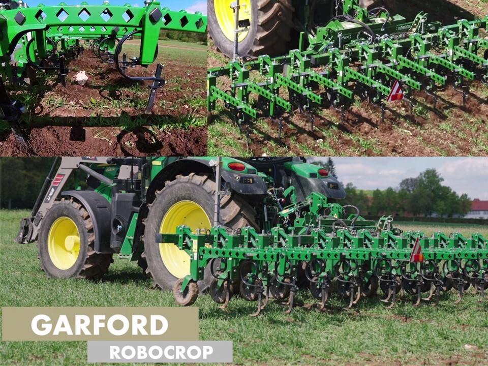 Der Robocrop mit sechs Metern Arbeitsbreite von Garford arbeitet mit einer Multispektralkamera und einem Parallelogramm mit hydraulische Vorspannung. Eine Arbeitsgeschwindigkeit von 15 bis 18 kmh ist möglich. Der Multifunktionsträger ist mit Edelmetalleinschüben ausgestattet, vor allem Edelstahlschrauben für eine bessere Haltbarkeit. Mit 12,5 cm Abstand kann die Hacke im Getreide eingesetzt werden, sie läuft aber ebenso mit 5 cm Abstand im Gemüsebau, beispielsweise in Babyleaf-Salaten. Zwei Beete können gleichzeitig bearbeitet werden.