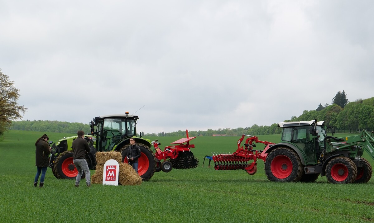 Herausfordernd sei der Einsatz am Standort auf der Schwäbischen Alb gewesen mit tiefgründigem Humus an der einen Stelle und flachgründigen, steinigen Böden an anderen Stellen, sagte Moderator Tobias Bahnmüller vom RP Tübingen. Während des Drehens änderten sich zudem die Bedingungen. Die Vorführung erfolgte in einem Bestand von Sommergerste, der mit einem betriebsüblichen Reihenabstand ausgesät worden war. Untergliedert wurde die Vorführung in eine Striegel- und eine Hacksequenz.