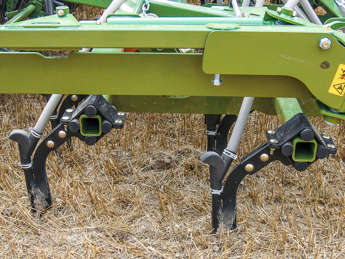 Bei Direktsaatmaschinen gibt es verschiedene Scharsysteme, die alle Vor- sowie Nachteile aufweisen. Zinkenscharmaschinen öffnen und räumen den Säschlitz mittels eines Meißels oder Zinken. Die vorhandene Mulchschicht wird dabei unterfahren und zur Seite geräumt, wodurch sich keine Stroh- oder Erntereste in der Saatrille befinden, welche Keimung und Jugendentwicklung der Saat beeinträchtigen. Durch Andruckrollen, Walzen oder Striegel wird im Anschluss die Saatrille wieder verschlossen. Zinkenscharmaschinen benötigen weniger Gewicht, da ein Zinken auch unter trockenen Bedingungen ein besseres Eindringverhalten in den Boden aufweist als eine Scheibe. Je nach Scharaufbau ist eine krümelige Bodenstruktur entscheidend für eine präzise Saatgutablage und einen erfolgreichen Verschluss der Saatrille. Zinkenscharmaschinen bewegen im Vergleich zu Scheiben viel Boden, wodurch das Bodenleben mehr gestört wird, Bodenfeuchte und Mulchauflage schwinden und mehr Unkräuter zur Keimung angeregt werden.