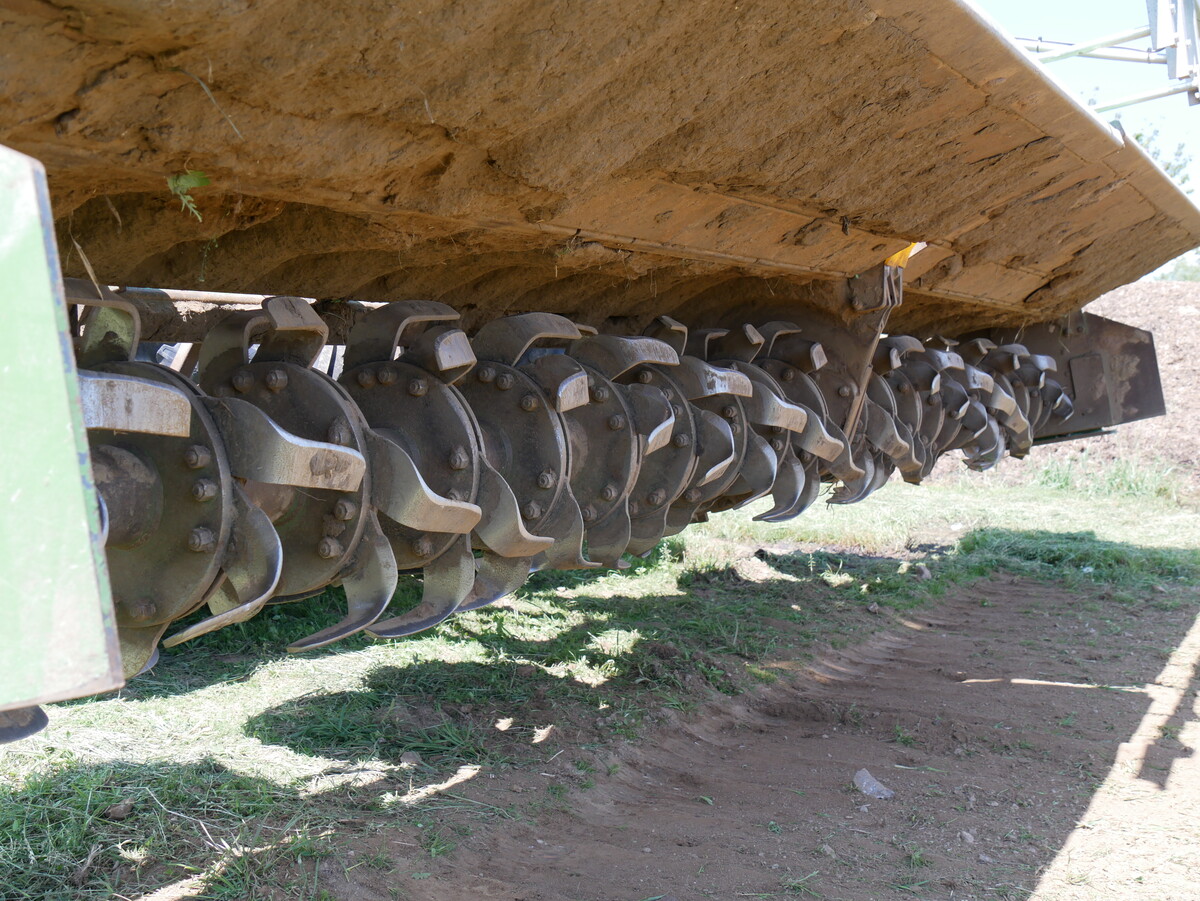 Häglers Fräse hat eine Arbeitsbreite von 5,50 m und 10 mm dicke Messer. Der Leistungsbedarf liegt über 200 PS. „Wenn man viele Steine auf dem Acker hat, so wie bei uns in der Oberpfalz, müssen die Messer so dick sein“, sagt Hägler. Wichtig sei, Rotordrehzahl und Fahrgeschwindigkeit genau aufeinander abzustimmen, damit der Boden nicht verschmiere. Außerdem solle nur im völlig trockenen Boden gefräst werden. Auch die nächsten zwei Tage sollte schönes Wetter sein. Nach fünf Tagen sei das Fräsmaterial dann abgestorben und könne mit dem Grubber eingearbeitet werden. „Damit werden meine zigtausende Mikroorganismen im Boden gefüttert. Durch die Zusammensetzung des Pflanzenbestands und die Arbeitsweise der Fräse brauch ich keine Fermente zur Rottelenkung. Ich bin nicht überzeugt davon, dass die Arten an Mikroorganismen in einem Ferment genau meine Mikroorganismen abbilden können.“