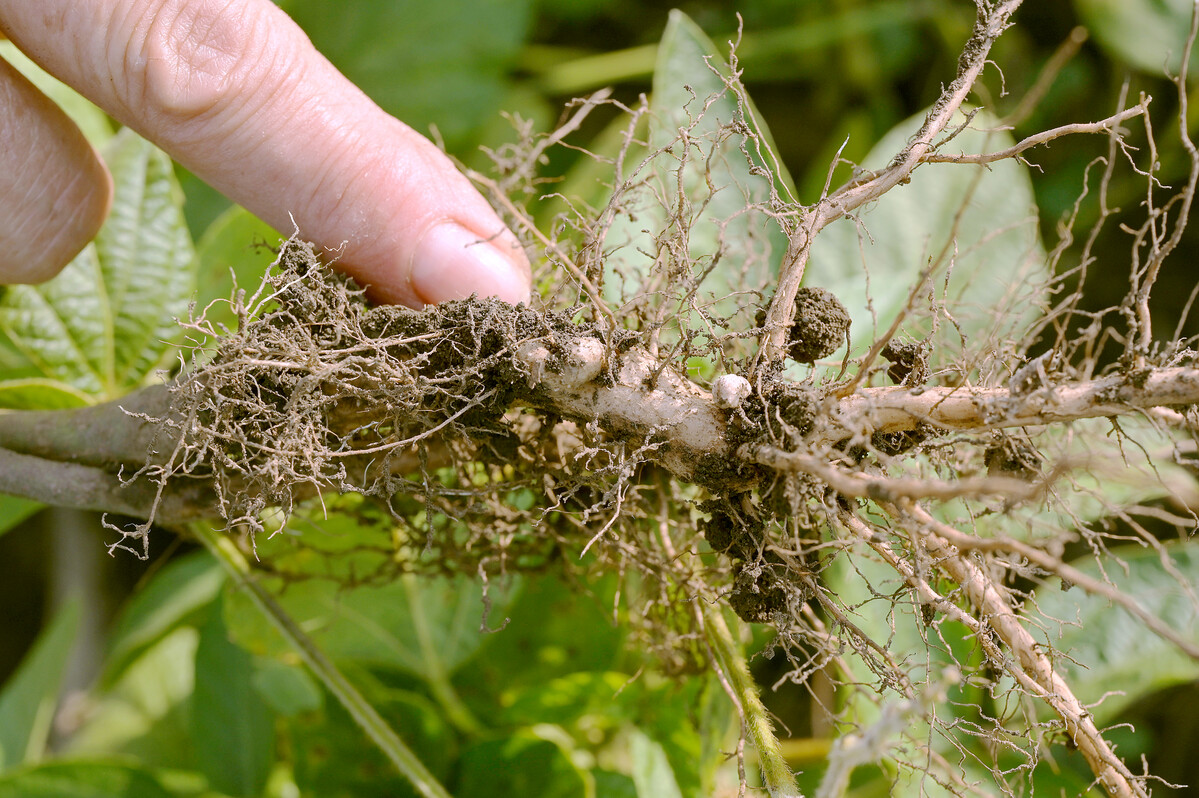 Der Anbau von Soja passt bestens in dieses Konzept. Valerija Balint zeigt auf kleine, weißgraue Kügelchen an den Wurzeln der herausgerissenen Pflanze. Stickstoff. Aus der Luft gebunden. Dem Boden zugeführt. „Das trägt sehr zur Fruchtbarkeit meiner Böden bei, zumal ich auch noch die Pflanzenreste unterpflüge.“