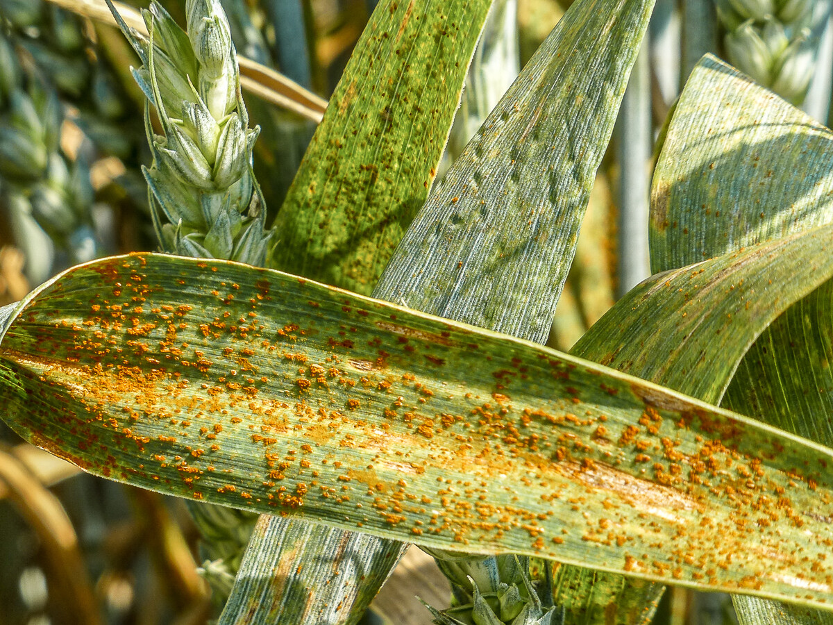 Weizenbraunrost ist eine auf warmen Standorten regelmäßig auftretende Abreifekrankheit, die je nach Witterung zu hohen Ertragsverlusten führt. Aufgrund der starken Dynamik der Braunrostpopulation werden vorhandene Sortenresistenzen häufig bereits nach wenigen Jahren durchbrochen. Bei anfälligen Weizensorten wie zum Beispiel Tobak, Pep, KWS Eternity, Produzent, KWS Donovan, Foxx, LG Initial oder Porthus ist ab der Entfaltung des Fahnenblattes auf die typischen rotbraunen Rostpusteln zu achten. Zur Bekämpfung eignen sich unter anderem Fungizide mit den Azolwirkstoffen Tebuconazol oder Metconazol sowie bei unkritischer Strohabreifedauer das Strobilurin Azoxystrobin. Wichtig ist unbedingt ein früher Behandlungstermin vor Befallsbeginn.