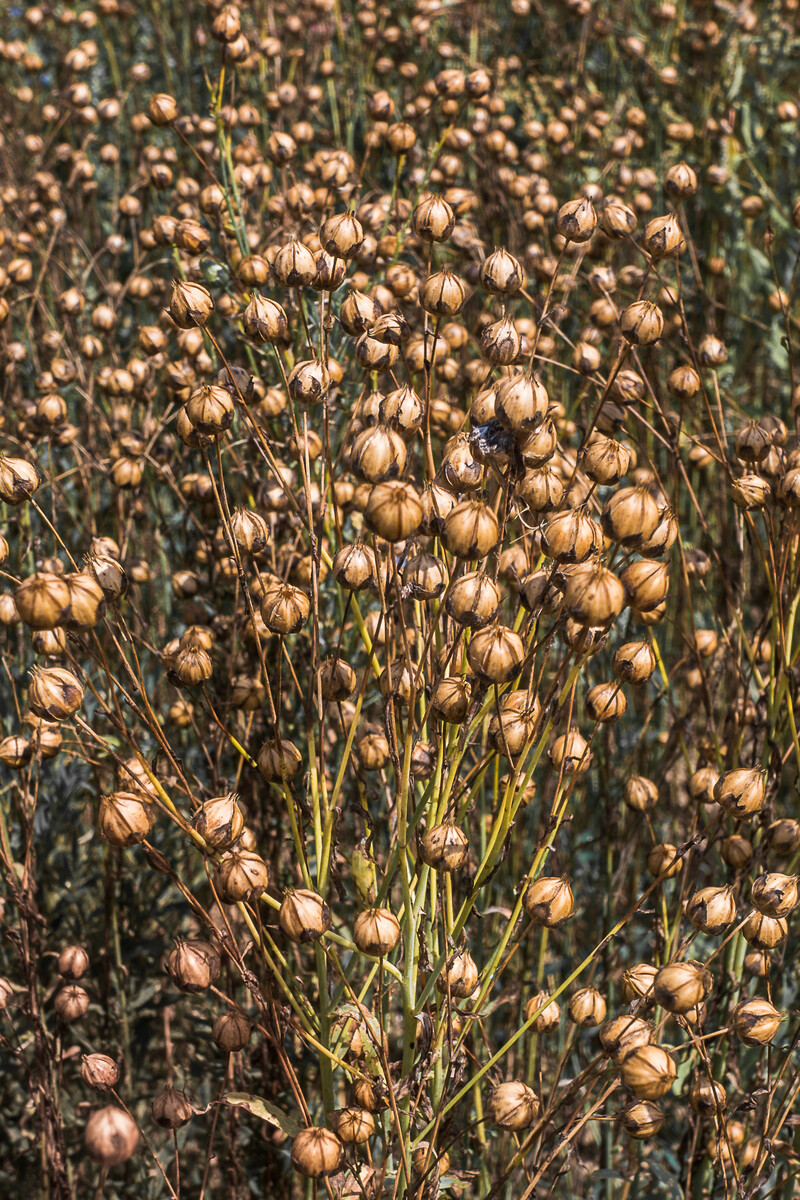 Sind die Kapseln des Ölleins Ende August bis Mitte September braun und die enthaltenen Samen erzeugen beim Schütteln ein metallisches Geräusch, so ist der optimale Erntetermin erreicht und die Kornfeuchte liegt bei 9-11%. Da es sich bei Lein um eine Faserpflanze mit zähem Stroh handelt, müssen die Messer des Mähwerks sehr scharf sein und sollten bei Bedarf vor der Ernte erneuert werden. Für den Drusch sollte die Stängel möglichst bis zur halben Wuchshöhe gut abgereift sein und bei einer Stoppelhöhe von 20 bis 30 Zentimetern geschnitten werden. Beachten Sie, dass grünes Stroh bei frühem Druschtermin durch starke Wickelbildung im Schneid- und Dreschwerk erhebliche Probleme verursachen kann. Für einen gleichmäßigen Gutfluß sollte die Dreschtrommel mit Trommelabdeckblechen versehen werden und zügig gefahren werden. Als Grundeinstellung sollte der Dreschspalt relativ eng gewählt werden, das Obersieb auf 8-10 mm und das Untersieb auf ca. 6 mm eingestellt und die Drehzahl des Reinigungsgebläses im unteren Drittel betrieben werden.
