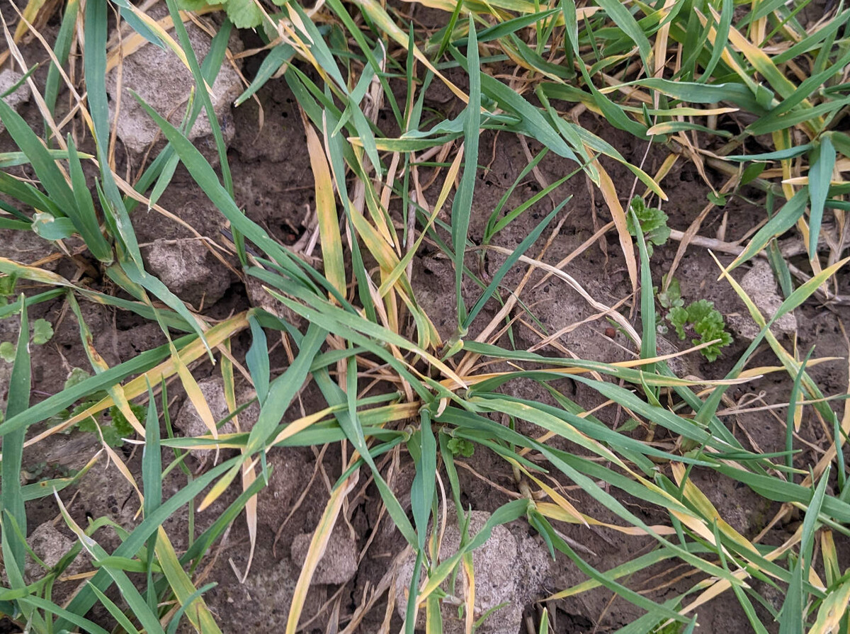 In vielen Weizenbeständen sind derzeit großflächige Aufhellungen zu beobachten, meist an den älteren Blättern. Auf kalten, von Staunässe gekennzeichneten Flächen, bei denen Bodenbearbeitung und Aussaat unter zu feuchten Bedingungen erfolgte, handelt es sich überwiegend um Nährstoffmangel, vorwiegend von Stickstoff aufgrund einer ungünstigen Bodenstruktur, schlechter Durchlüftung sowie einem nur unzureichend ausgebildetem Wurzelsystem der Pflanzen. Jedoch sind Aufhellungen auch in Beständen zu finden, die bis zur dritten Oktoberwoche gedrillt wurden und eine gute Bodenstruktur aufweisen. Es handelt sich dabei überwiegend um Herbstinfektionen mit Septoria tritici, erkennbar an den typischen dunklen Fruchtkörpern (Pyknidien) in den aufgehellten Blattbereichen. Diese Befallsherde sind aktuell noch unbedenklich, sollten aber insbesondere bei anfälligen Sorten (wie Patras, Reform, Nordkap, Pep, Foxx, Absint) im Auge behalten werden, da von ihnen die Infektionen der oberen Blattetagen ausgehen, die den Ertrag dann deutlich beeinträchtigen können.