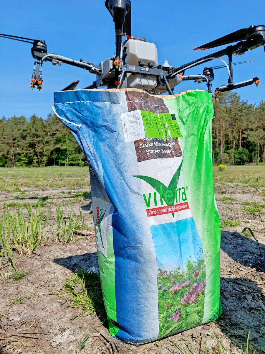 Mit der neuen Zwischenfruchtmischung viterra Drohne erweitert die Saaten-Union ihr Portfolio um eine für die Aussaat per Drohne konzipierte Lösung. Die Aussaat könne bereits rund 14 Tage vor dem Drusch im stehenden Getreide erfolgen. Damit lassen sich optimale Vegetationsbedingungen nutzen, insbesondere Restbodenfeuchte und längere Wachstumsphasen im Spätsommer, heißt es. Gleichzeitig könne die Zwischenfruchtaussaat mit Drohne zur Entzerrung von Arbeitsspitzen beitragen. Die Mischung wurde laut Hersteller gezielt für bessere Flugeigenschaften und einen sicheren Auflauf konzipiert. Sie komme ohne Kreuzblütler aus und friert sicher ab. Zur Zusammensetzung gehören (Samenanteile): 26 Prozent Chia, 19 Prozent Phacelia, 19 Prozent Michelis Klee, 18 Prozent Öllein und 16 Prozent Alexandriner Klee. Der Leguminosenanteil liegt bei 37 Samen-Prozent beziehungsweise 46 Gewichts-Prozent und erfülle damit die Vorgaben der Düngeverordnung. Die empfohlene Aussaatstärke beträgt 15 Kilogramm pro Hektar. Die Aussaat kann von Anfang Juli bis Ende August erfolgen.