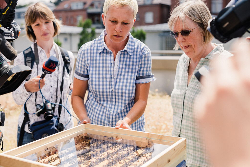 Den sechs Bienenvölkern auf dem Dach der Südwestbank im Stuttgarter Westen wird ab Mitte August eingeheizt: Imkerin Maren Schwarz testet eine neue Methode um den Varroamilben den Garaus zu machen. Über die Erfahrungen der Imkerin mit der Bienensauna werden wir fortlaufend berichten. Das Projekt wurde kürzlich zusammen mit dem Erfinder vorgestellt.