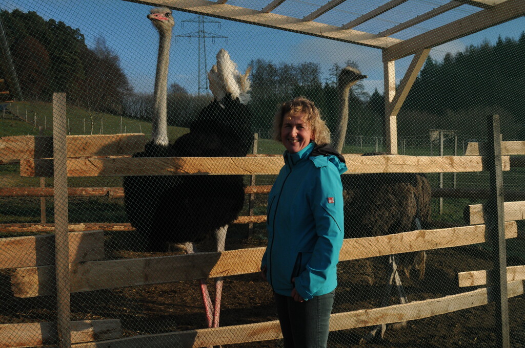 Fünf Quadratmeter Fläche sind für ein Tier im Stall vorgeschrieben. Um alle Strauße unterbringen zu können mussten Masttiere außer der Reihe geschlachtet werden. Positiv sei die Welle der Solidarität gewesen: Das Fleisch der Strauße wird gewöhnlich über E-Mail an Stammkunden vermarktet. „In einer Mail habe ich die Situation geschildert und Fleisch zum Verkauf angeboten“, erzählt Ingrid Frick. Zahlreiche Empfänger hätten die Nachricht an Freunde und Bekannte weitergeleitet und das Fleisch – übrigens bei der Schlachtung dreifach auf das H5-Virus getestet – war binnen weniger Tage verkauft. Ingrid Frick hofft, dass die Aufstallpflicht zum 1. Februar entfällt: „Es geht nicht länger!“. Das sei gegen die Natur dieser Tiere. Und auch gegen ihre eigene Philosophie. Im Laufe der Zeit würden weitere Probleme anfallen, beispielsweise fressen die Strauße um diese Jahreszeit noch von der Wiese. Nun wird Heu zu gefüttert. Die Tiere sollten artgerecht gehalten werden. Sollte sie dennoch verlängert werden, wird sie eine Sondergenehmigung beantragen. Die gebe es, aber dann müssten alle drei Wochen Kotproben von den Tieren genommen und beprobt werden. Die Strauße sind nicht über die Tierseuchenkasse versichert. „Ich will nicht wissen was passiert, wenn dann eine Probe positiv wäre“.