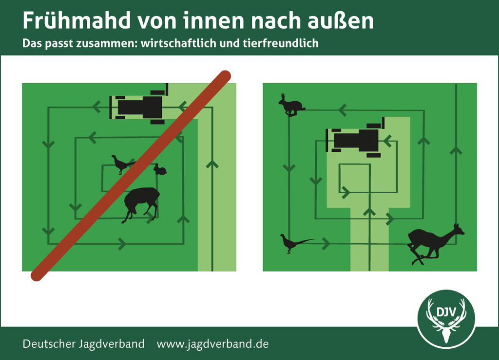 Der Bundesverband Lohnunternehmen (BLU), Bundesverband der Maschinenringe (BMR), Deutscher Bauernverband (DBV) und Deutscher Jagdverband (DJV) empfehlen den Landwirten, den Mähtermin mindestens 24 Stunden vorher mit dem Jagdpächter abzusprechen oder selbst erforderliche Maßnahmen für die Wildtierrettung durchzuführen.