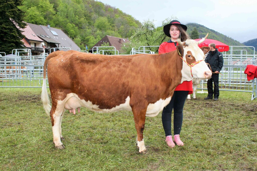 Spannend war die Titelvergabe „Miss Hinterwälder“. Die treffende dafür war bald gefunden, es ist die Napfocktochter Samia von Manfred Schelshorn aus Bernau. Sie lief in der Euterauswahl und war Reservealtkuhsiegerin, Mutter des Reservesiegerbullen und die typvollste Hinterwälderkuh. Die Jungkuhsiegerin Frieda aus dem gleichen Betrieb wurde Reservesiegerin in diesem Titel.