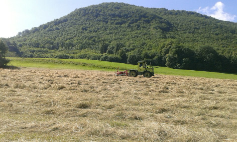 Zudem sind einige technische Standards einzuhalten. So beginnt die Erzeugung von Qualitätsheu bei der Mahd des abgetrockneten Bestandes mit einer Schnitthöhe von mindestens acht Zentimeter. Erfolgt keine direkte Breitablage des Mähguts, sollte anschließend sofort gezettet werden, um die Abtrocknung zu beschleunigen. Jedoch ist es bei feuchtem Boden, wie dies im letzten Jahr der Fall war, sinnvoll später zu zetten, da so zunächst die Abtrocknung des Untergrundes gefördert wird. Bei der mechanischen Bearbeitung sollten die Zinken der Geräte etwa vier Zentimeter Bodenabstand aufweisen. Beim ersten Zettvorgang muss die Zapfwelle noch mit bis zu 500 U/min arbeiten, da so eine lockere Verteilung der Pflanzenbüschel erfolgt und dies die Trocknung beschleunigt. Ab dem zweiten Wenden sollte eine Reduzierung der Zapfwellendrehzahl auf rund 350 U/min erfolgen. Dies senkt die Bröckelverluste. Grundsätzlich darf das Futter nicht zu häufig gewendet werden. In der Regel reichen zwei Wendevorgänge pro Tag aus. Ab dem zweiten Tag ist das Ziehen eines Nachtschwades sinnvoll. So kann der Boden am nächsten Morgen nochmals besser abtrocknen und bei Tau findet eine geringere Befeuchtung des Futters statt.