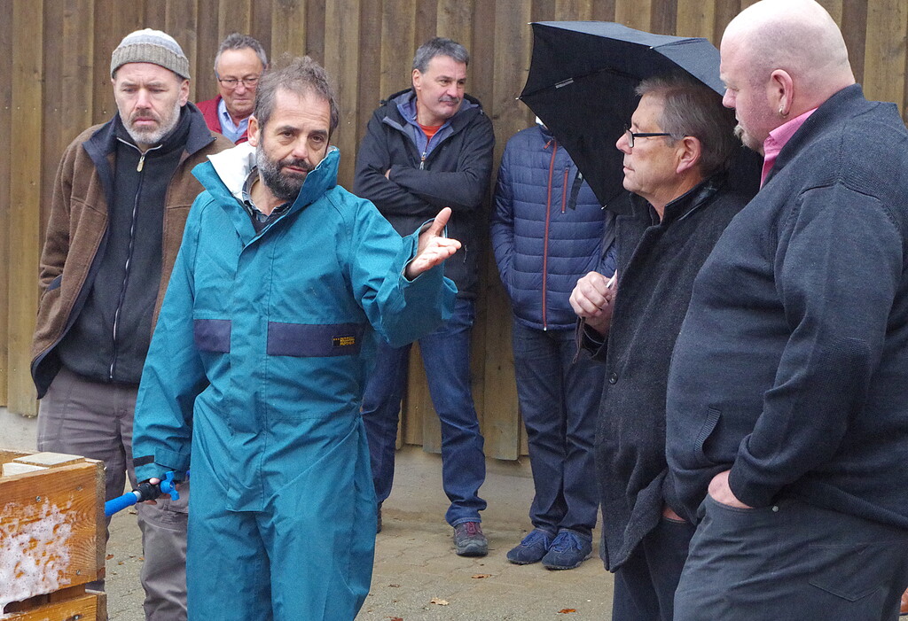 Wohin mit der abgetropften Desinfektionslösung, wenn die Reinigung der Kisten abgeschlossen ist? "Da Benzoesäure als Pflanzenschutzmittel zugelassen ist, darf sie nicht in die Kanalysation fließen", erklärt der Fachmann. Allerdings werde Benzoesäure auch in der Lebensmittelindustrie eingesetzt und sei für den Organismus weitgehend unbedenklich - trotz der Zulassung als Pflanzenschutzmittel.