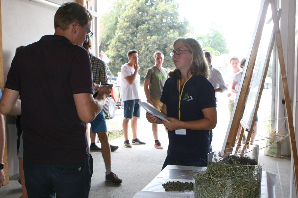 Das Rohprotein aus dem Grundfutter besteht aus zwei Fraktionen, wie Mistlinger beim Stationenrundgang auf dem Allgäuer Grünlandtag erläuterte: dem Reineiweiß sowie den NPN-Verbindungen. Von diesem Rohprotein wandert ein Teil von 20 bis 30 Prozent als unabgebautes Futterprotein (UDP-Fraktion) direkt in den Dünndarm und steht dem Tier dort als nutzbares Rohprotein (nXP) zur Verfügung. Der Rest in Höhe von 70 bis 80 Prozent durchläuft den Vormagen und wird zu Mikrobenprotein umgebaut. Die Bildung dieses Mikrobenproteins ist abhängig von der Energie- und Ammoniakversorgung. Mit steigender Milchleistung nimmt der Bedarf der Kuh an nutzbarem Rohprotein zu. Damit muss auch der Anteil an UDP-Eiweiß steigen. Zudem lösst sich durch höhere nXP-Gehalte im Grundfutter der Zukauf an Eiweißfutter vermindern, was die Nährstoffbilanz des Betriebes entlastet. „Deshalb ist es wichtig, dass bei der Konservierung die Eiweißqualität erhalten bleibt“, erklärte die Tierernährerin.