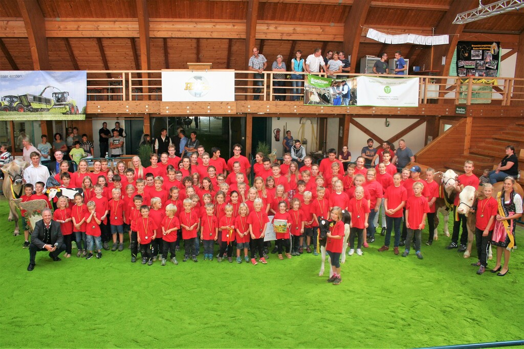 Leonhard Denzel, Eberhardzell, eröffnete als jüngster Teilnehmer die Schau. Bei den 28 Teilnehmern im Alter bis sieben Jahre floss neben dem Vorführen, das Wissen der Kinder über Haltung und Fütterung der Kälber in die Richtentscheidung mit ein. Ariane Hübl, Horb; Theo Hofer, Neukirch; Sonja Brauchle, Leutkirch; Martin Fuchs, Schlier; Sarah Klenk, Murrhardt; Carla Schupp, Waldshut-Tiengen; Johannes Brauchle , Leutkirch und Levin Knödler, Markdorf konnten jeweils ihre Ringe gewinnen und erreichten das Finale um den Titel MINI-Champion. Die Siegerin Sarah Klenk zeigte schon die geforderte Vorführhaltung und verwies mit einem top gestylten Rind Sonja Brauchle aus Leutkirch auf den zweiten Platz.