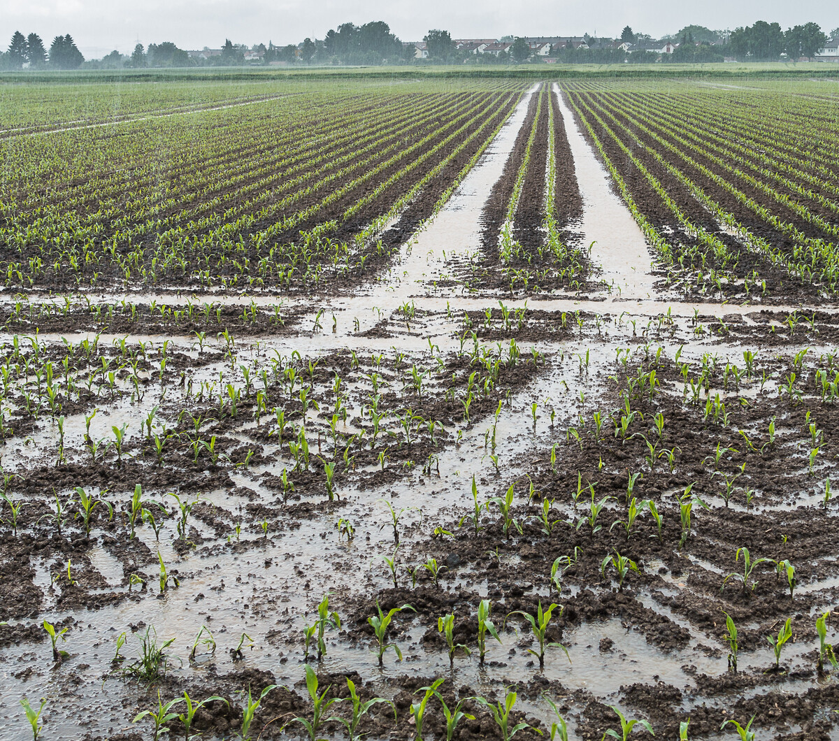 Nach kräftigen Regenschauern lohnt sich nun ein Blick auf die Ackerflächen, um Stellen mit reduzierter Wasserinfiltration zu erkennen. Gerade im Hinblick auf die oftmals angespannte Niederschlagssituation sind solche Stellen problematisch, da sie auf Schadverdichtungen im Untergrund hinweisen und eine optimale Durchwurzelung verhindern. Auch sind solche Bereiche meist Keimzelle von Wassererosion, welche besonders in trockenen Jahren die Wasserversorgung der Kulturpflanzen weiter einschränkt. Nach der Ernte sollten betroffene Bereiche falls nötig gekalkt und bei trockenen Bodenverhältnissen gelockert werden. Anschließend muss die nun noch labile Bodenstruktur durch den Anbau von Zwischenfrüchten oder Winterraps stabilisiert werden.