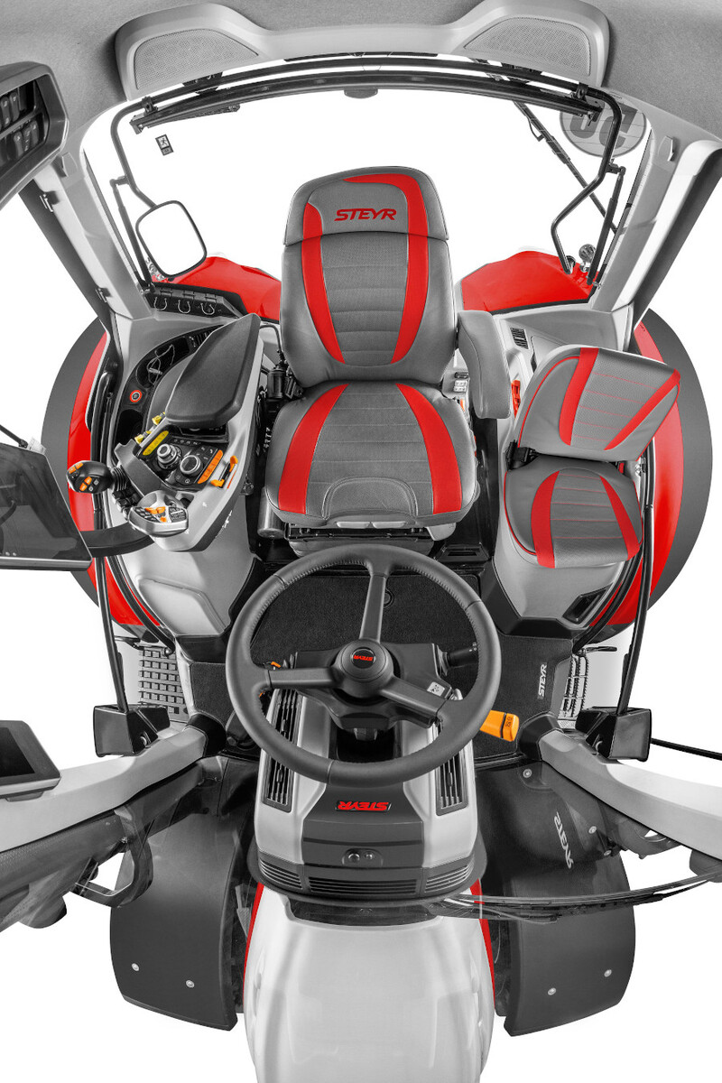 Das Vier-Säulen-Panoramadesign der Kabine umfasst große Fenster, ein Freisichtdachfenster und eine einteilige Frontscheibe mit einer oberen gewölbten Kante und einem um 27 Prozent vergrößerten Wischbereich. Die neue automatische Klimaregelung verfüge über eine erhöhte Kühlleistung und eine automatische Zonenregelung. Der Geräuschpegel wurde durch den Einsatz schallschluckender Innenraummaterialien laut Steyr auf 66 Dezibel gesenkt. Die neuen Sitze verfügen über Kühlung, Heizung und eine neigbare Rückenlehne. Der Komfort werde durch ein neues Fahrpedal erhöht, das eine präzise Steuerung von der Kriech- über die Feld- bis zur Straßenfahrt ermöglichen soll. Außerdem gibt es mehr Platz und Stauraum sowie mehr Steckdosen in der Kabine.