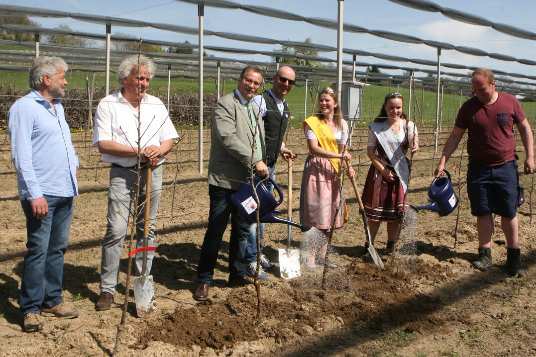 Zentraler Baustein des Konzepts sind resistente und teils auch frosthärtere Sorten, die unter anderem von der Lehr- und Versuchsanstalt aus Weinsberg (LVWO) kommen oder bereits am Kompetenzzentrum Obstbau Bodensee (KOB) in Bavendorf in der Prüfung stehen. Da aufgrund klimatischer Verhältnisse nicht jede Sorte zu jedem Standort passt, werden diese Sorten am Bodensee unter Praxisbedingungen getestet. Dies erfolgt in zwei Modellanlagen.Eine davon steht im Bodenseehinterland in einer frostgefährdeten Lage. Sie wird von Johannes Michel aus Frickingen betreut. Die andere befindet sich in der Nähe von Kressbronn und wird von den Familien Kraus und Emser bewirtschaftet.
