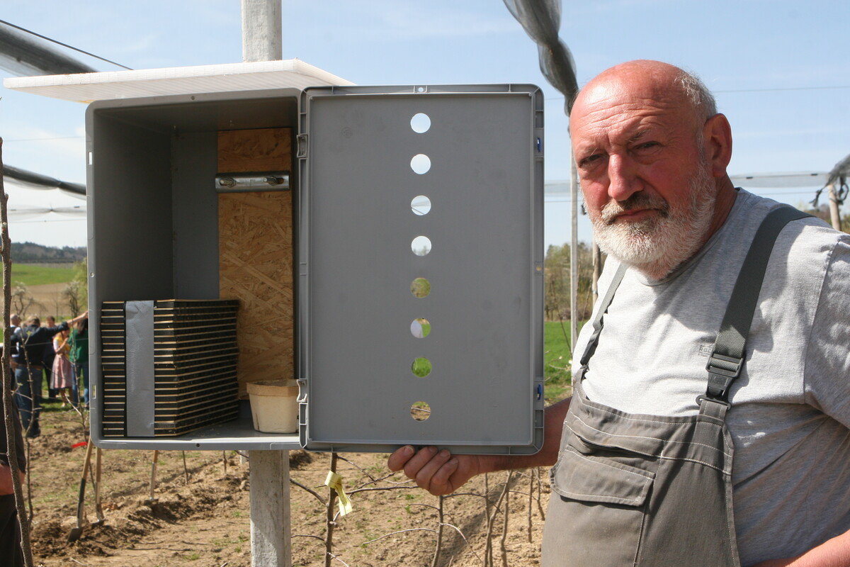 Ziel des Projekts, das von Obsterzeugern angestoßen wurde und unter der Regie der Obstregion Bodensee läuft, ist die nachhaltige Weiterentwicklung des Obstbaus am Bodensee.Anlass war die Diskussion über das Volksbegehren‚Pro Biene‘ und das in der Folge von der Landesregierung verabschiedete Biodiversitätsstärkungsgesetz,das eine Reduktion beim Einsatz von Pflanzenschutzmitteln um 40 bis 50 Prozent bis zum Jahr 2030 vorsieht.„Wir wollen beim Pflanzenschutz einsparen,doch das muss fachlich fundiert und wissenschaftlich begleitet erfolgen“, sind sich ThomasHeilig und Erich Röhrenbach, die sich den Vorsitz der Obstregion teilen, beim Vor-Ort-Termin in Frickingen-Altheim einig.