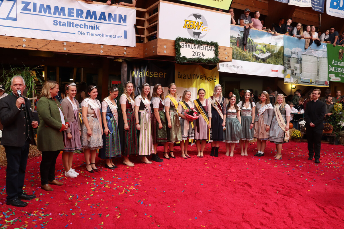 Tanja Hofer, Kißlegg, Christine Kempter, Argenbühl, und Lisa-Marie Renz, Ulm, waren angetreten, um das Amt der Braunviehkönigin von Isabell Allmendinger zu übernehmen. Dies hatte in ihrer zweijährigen Amtszeit mehr als 80 Auftritte, wo sie über 15.000 km zurückgelegt hatte! Die Spannung stieg, als Ministerialdirektorin Isabel Kling das Wahlergebnis verkündete. Unter großem Applaus der rund 2000 Zuschauer wurde Lisa-Marie Renz für die Amtszeit von zwei Jahren gewählt. Sie wird nun die Brown Swiss-Züchter aus Baden-Württemberg bei der in Kolumbien stattfindenden Weltbraunviehkonferenz vertreten.