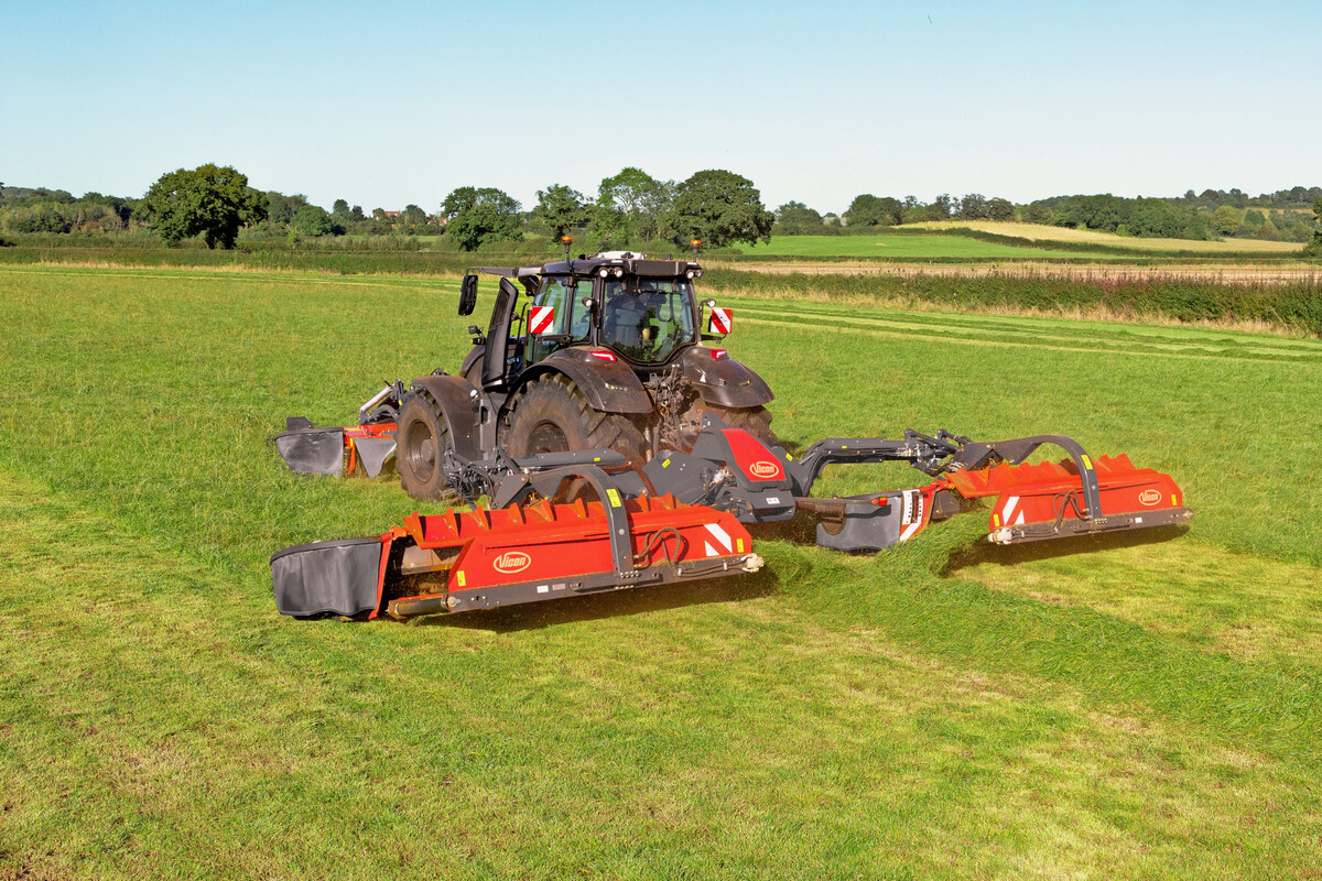 Die Zehn-Meter-Butterfly-Mähwerkskombination von Vicon gibt es in der neuen Version Extra 7110 mit 10,2 Metern Arbeitsbreite und hydraulischer Verstellung der Arbeitsbreite. Der CurvePilot stellt dabei eine Weiterentwicklung der hydraulischen Überlappungseinstellung dar. Diese passt die Überlappung zwischen den vorderen und hinteren Mäheinheiten kontinuierlich an, um die Arbeitsbreite und Kapazität optimal auszunutzen und gleichzeitig das Risiko von Streifen auf dem Feld zu minimieren. Unabhängig von GPS-Systemen sei dies eine eigenständige, sensorgestützte Technologie.