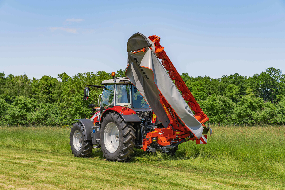 Kuhn erweitert das Produktprogramm der Scheibenmähwerke um zwei Heckanbaumaschinen mit Vertikalklappung: das GMD 3515 und GMD 4015 mit Arbeitsbreiten von 3,50 beziehungsweise 3,95 Metern. Die Vertikalklappung mit einem Winkel von 125 Grad sorge dafür, dass der Schwerpunkt während des Straßentransports dicht hinter dem Traktor liegt. Beide Mähwerke sind mit Lift-Control ausgestattet. Mit dieser hydropneumatischen Mähbalkenentlastung passt sich der Mähbalken kontinuierlich an die Bodenkontur an, heißt es. Der Auflagedruck lasse sich schnell und einfach einstellen. Integriert ist dabei die Non-Stop-Anfahrsicherung. Beide Modelle sind mit dem Optidisc-Elite-Mähbalken ausgestattet.