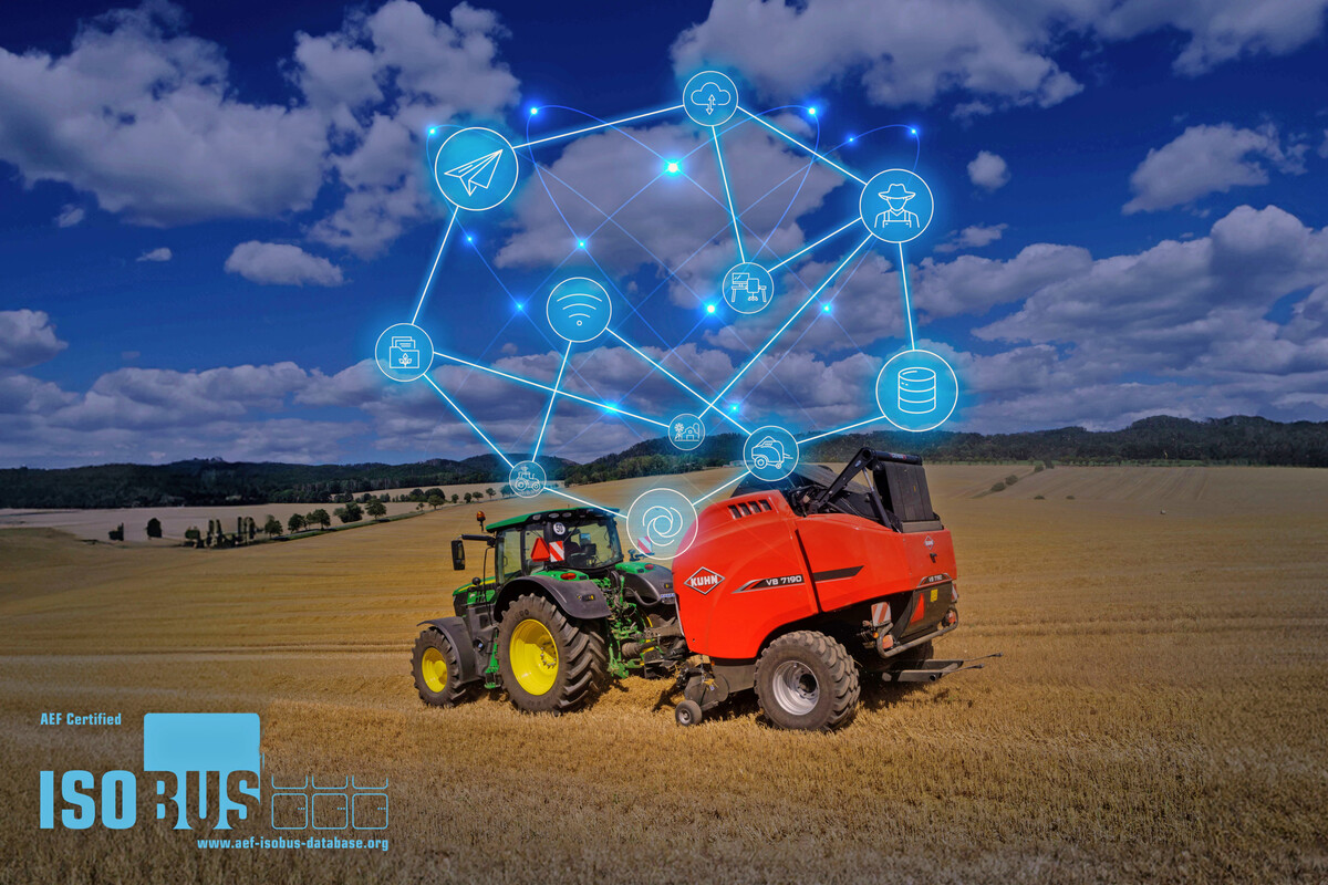 Das Tractor-Implement-Management deckt unter anderem folgende Funktionen ab: Automatisches Anhalten des Schleppers bei voller Presskammer sowie Binden des Ballens, automatischer Ballenauswurf, automatisches Anhalten des Schleppers bei Blockaden im Einzug mit vollständiger Beseitigung der Blockade und eine automatische Messerreinigung. Beim Task-Controller werden Informationen wie Ballenzahl, Kunden- und Schlagdaten, Ertrag und Ballengewicht aufgezeichnet, dokumentiert und kartiert. Die Pressen der Baureihe VB 7100 sind die ersten Rundballenpressen von Kuhn mit neuer Bedienoberfläche.